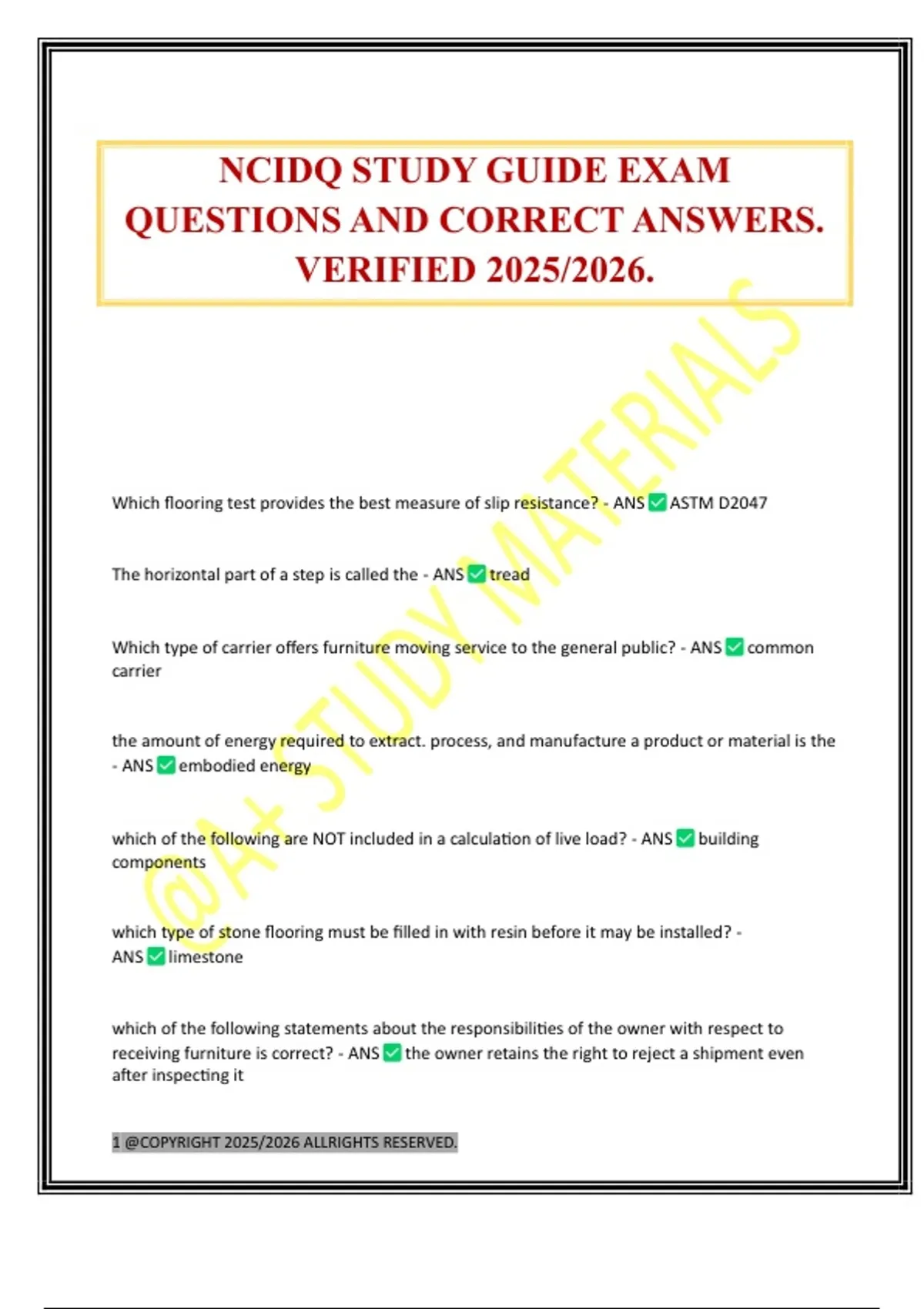 NCIDQ STUDY GUIDE EXAM QUESTIONS AND CORRECT ANSWERS. VERIFIED 2025/2026.