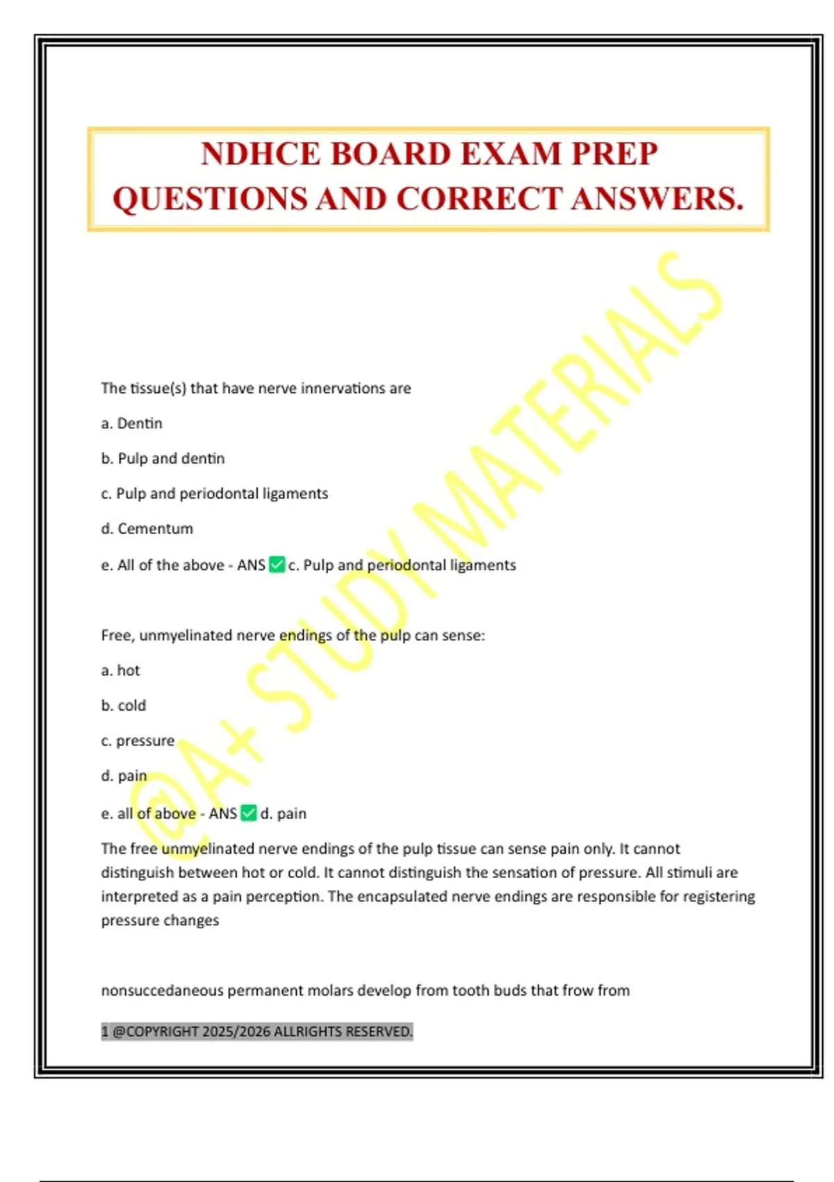 NDHCE BOARD EXAM PREP QUESTIONS AND CORRECT ANSWERS.