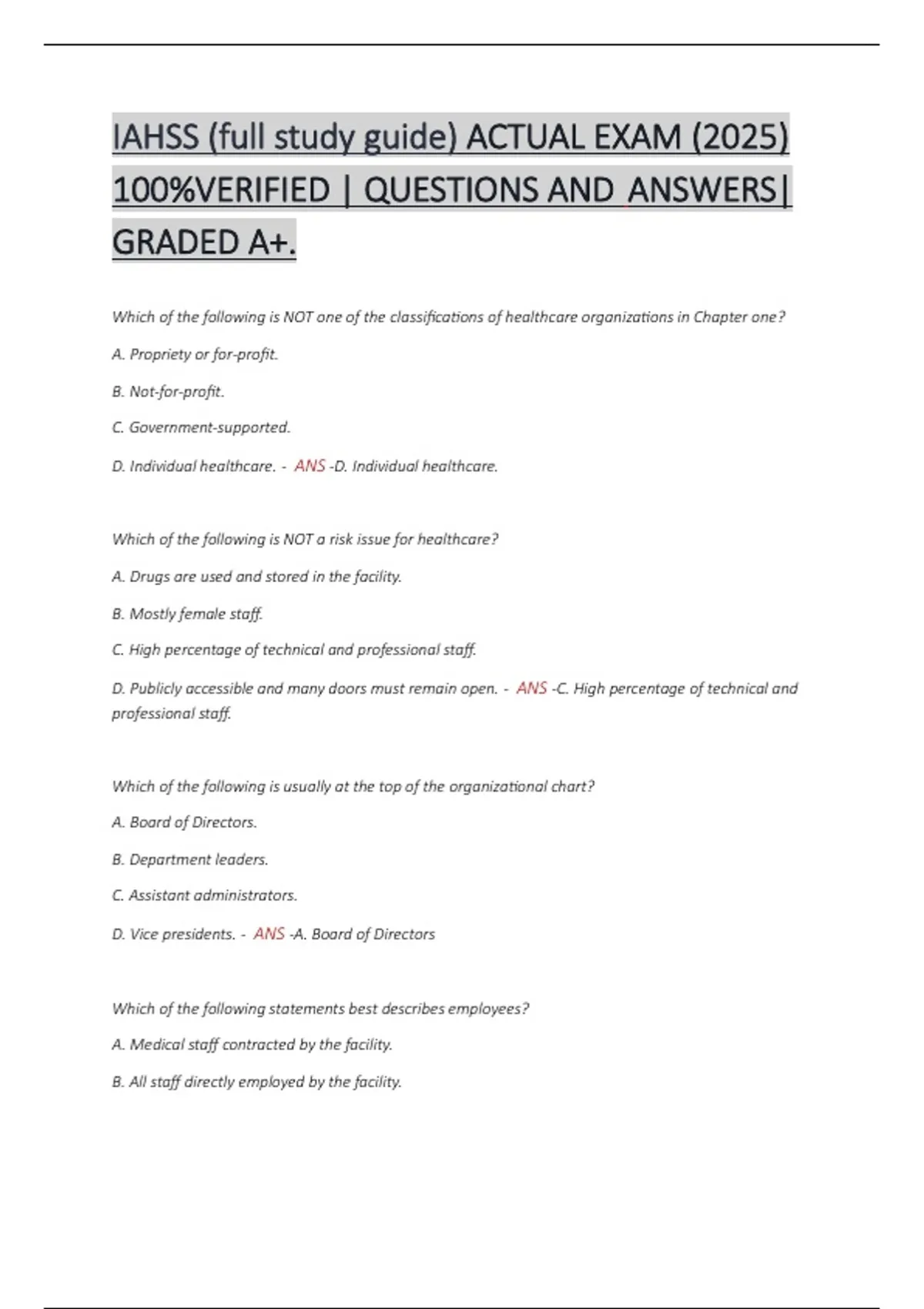 IAHSS (full study guide) ACTUAL EXAM (2025) 100%VERIFIED | QUESTIONS AND ANSWERS| GRADED A+.