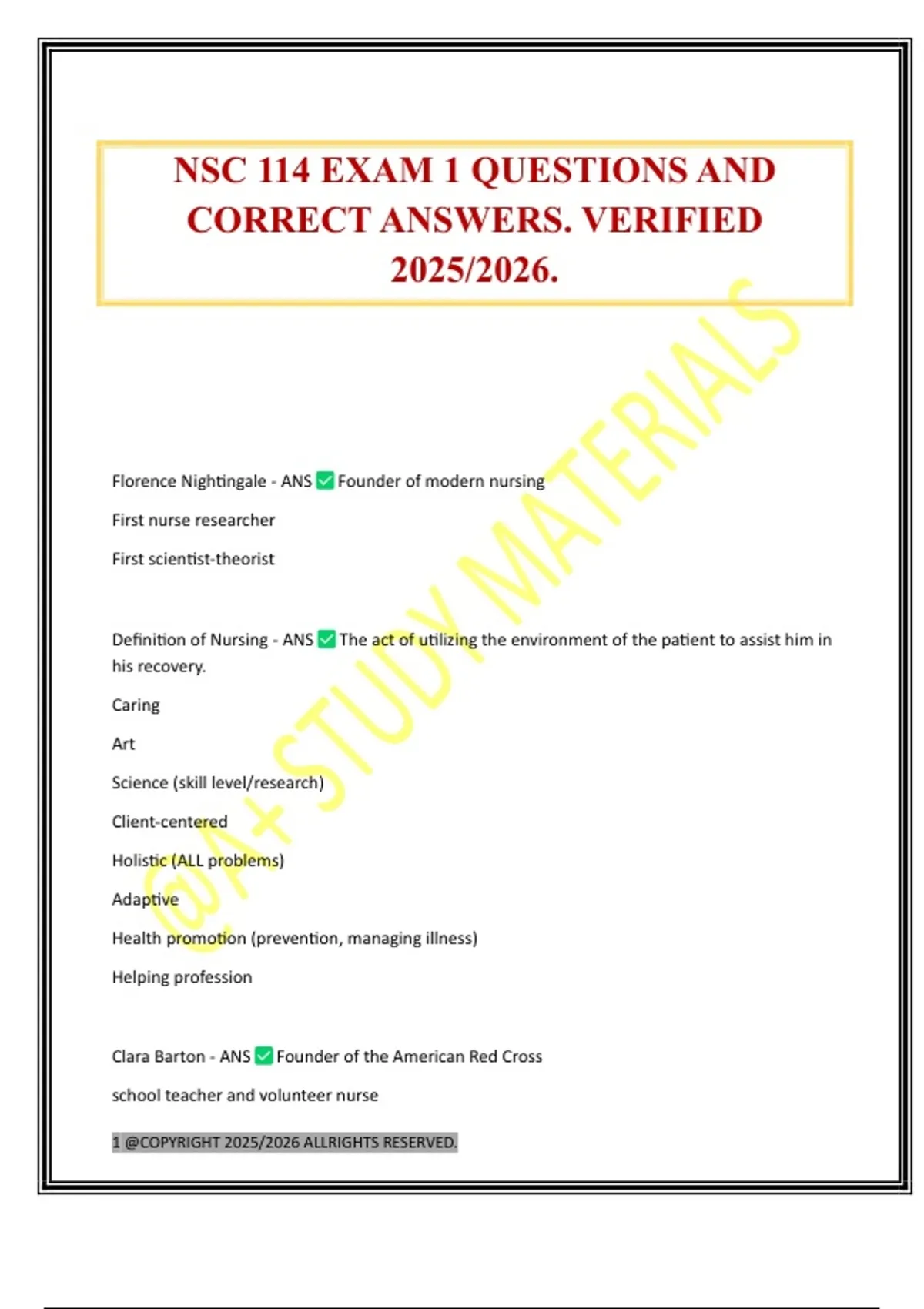 NSC 114 EXAM 1 QUESTIONS AND CORRECT ANSWERS. VERIFIED 2025/2026.