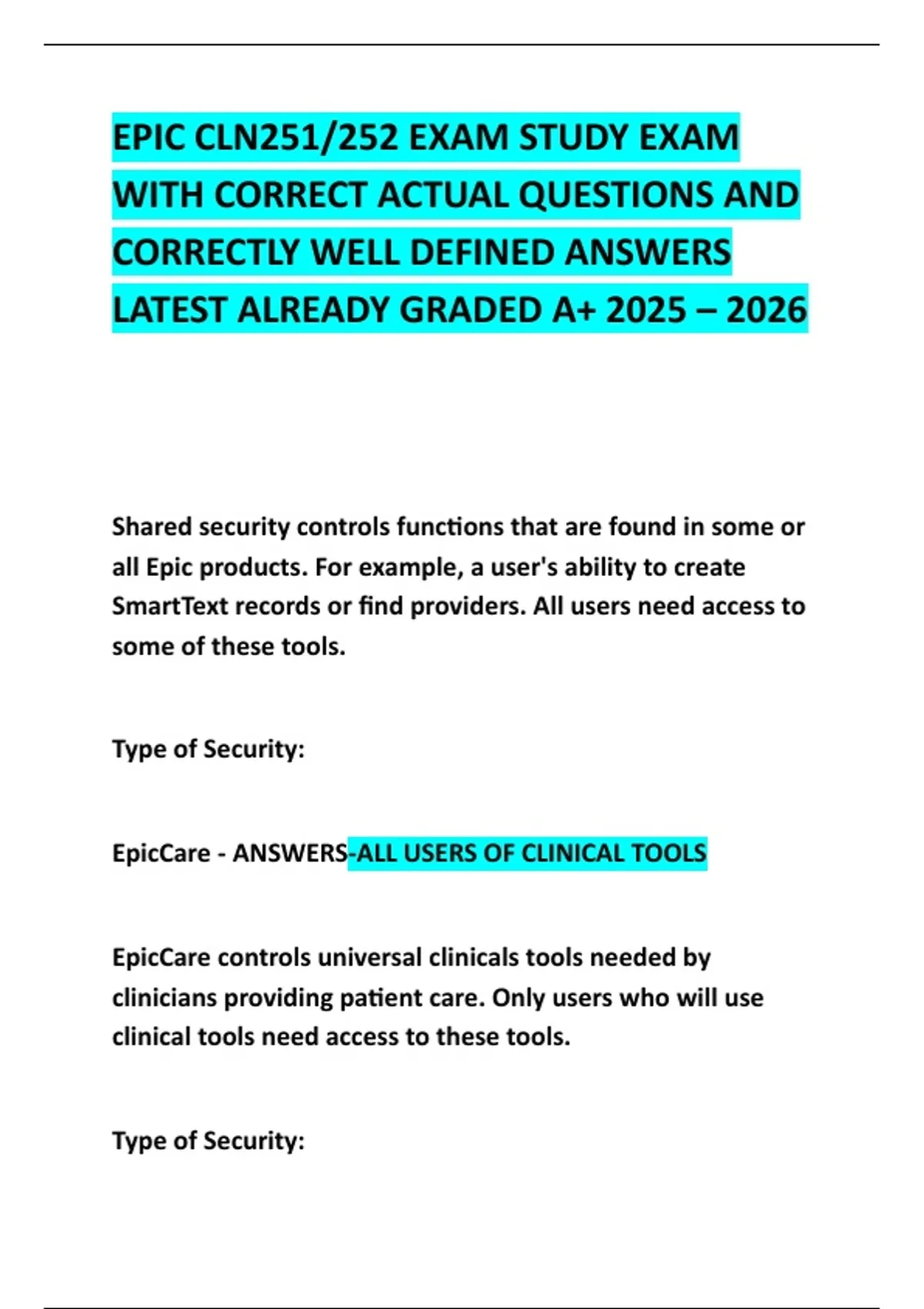 in Epic? - ANSWERS-Security Class (ECL)