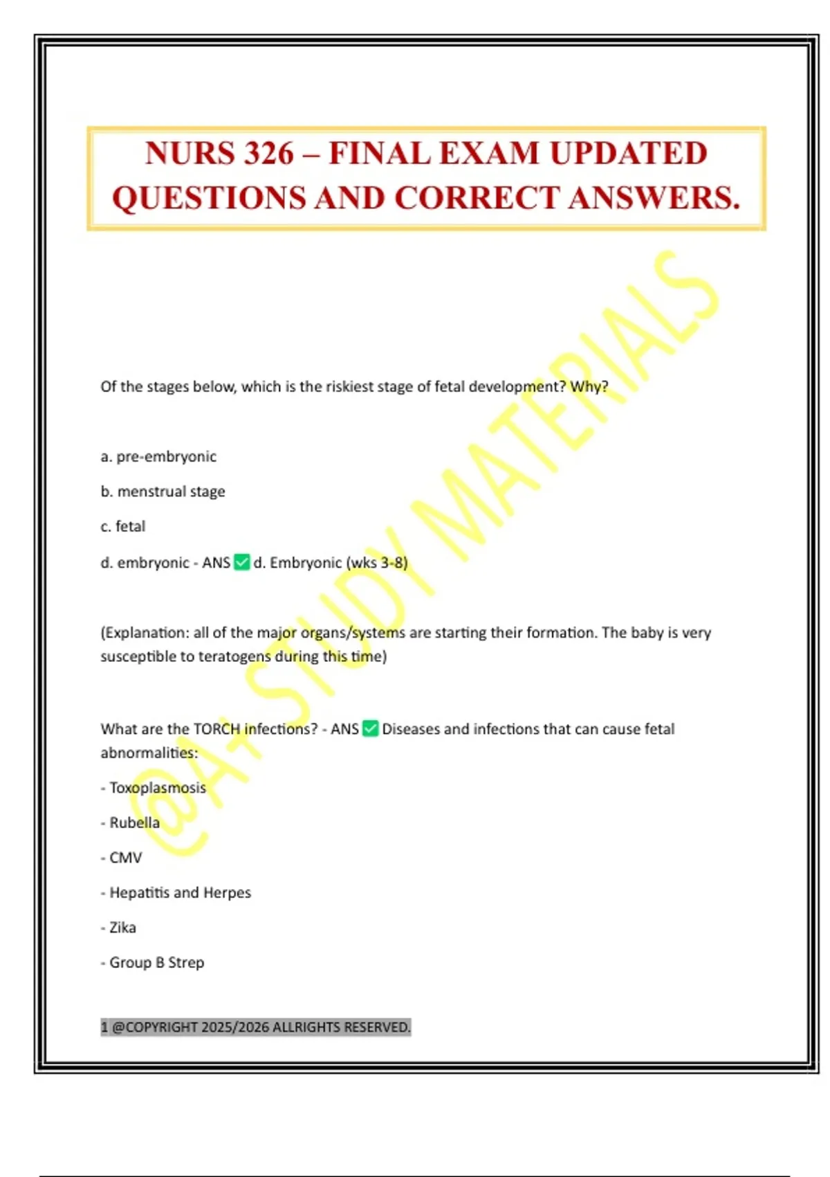NURS 326 – FINAL EXAM UPDATED QUESTIONS AND CORRECT ANSWERS.