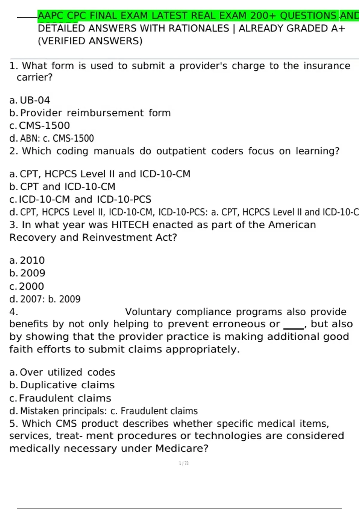 AAPC CPC FINAL EXAM LATEST REAL EXAM 200+ QUESTIONS AND