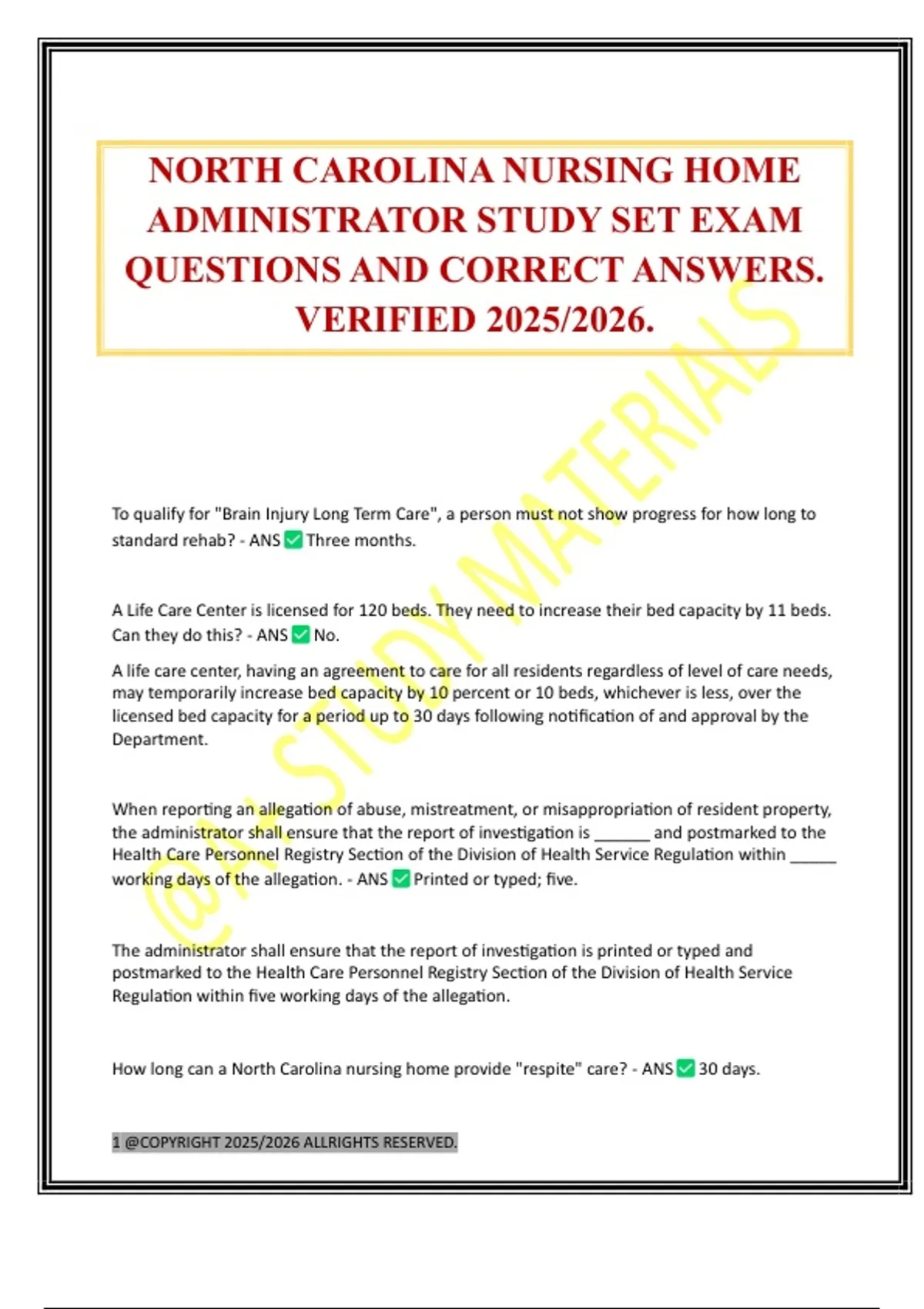 How long can a North Carolina nursing home provide "respite" care? - ANS 30 days.