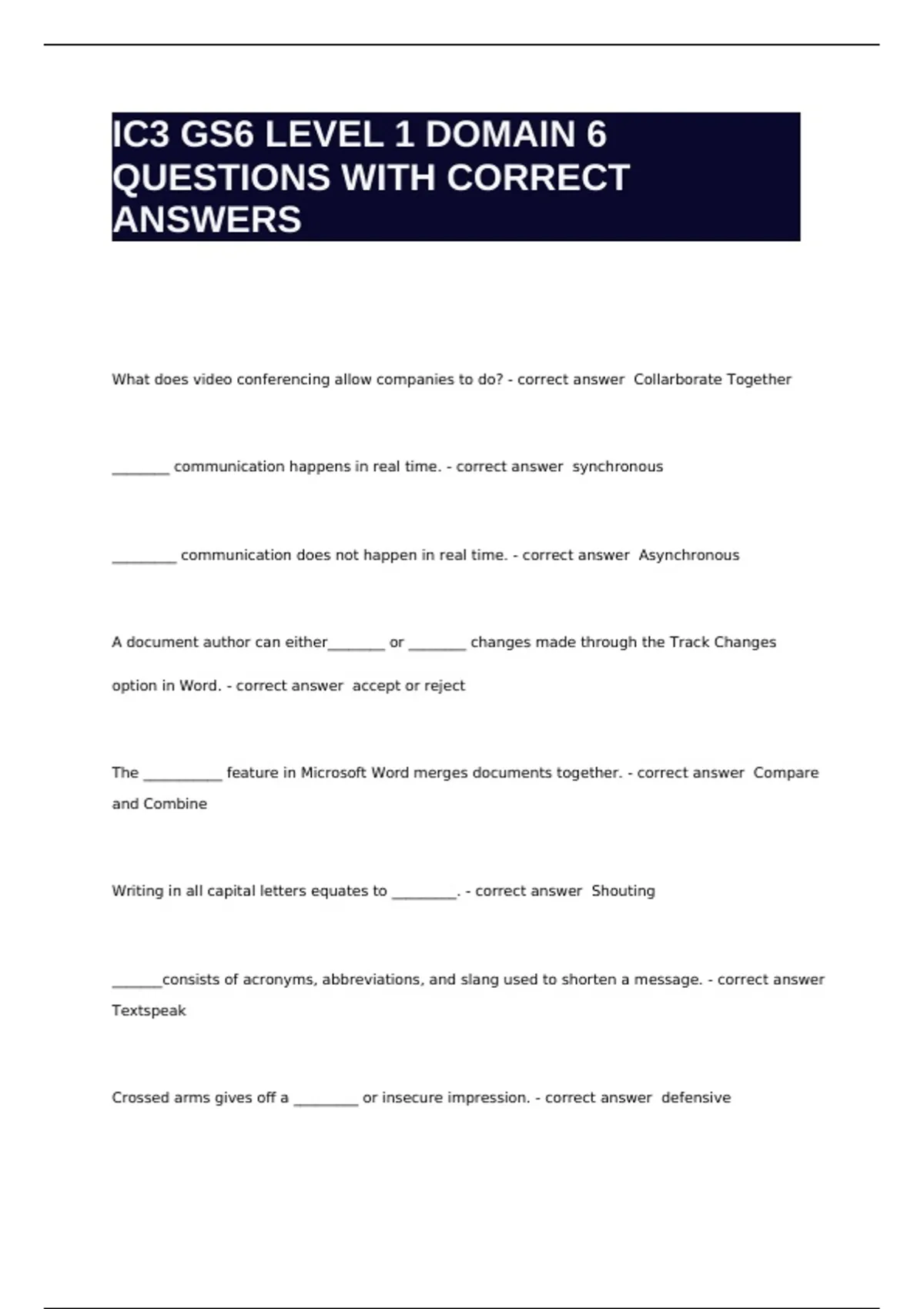 IC3 GS6 LEVEL 1 DOMAIN 6 QUESTIONS WITH CORRECT ANSWERS