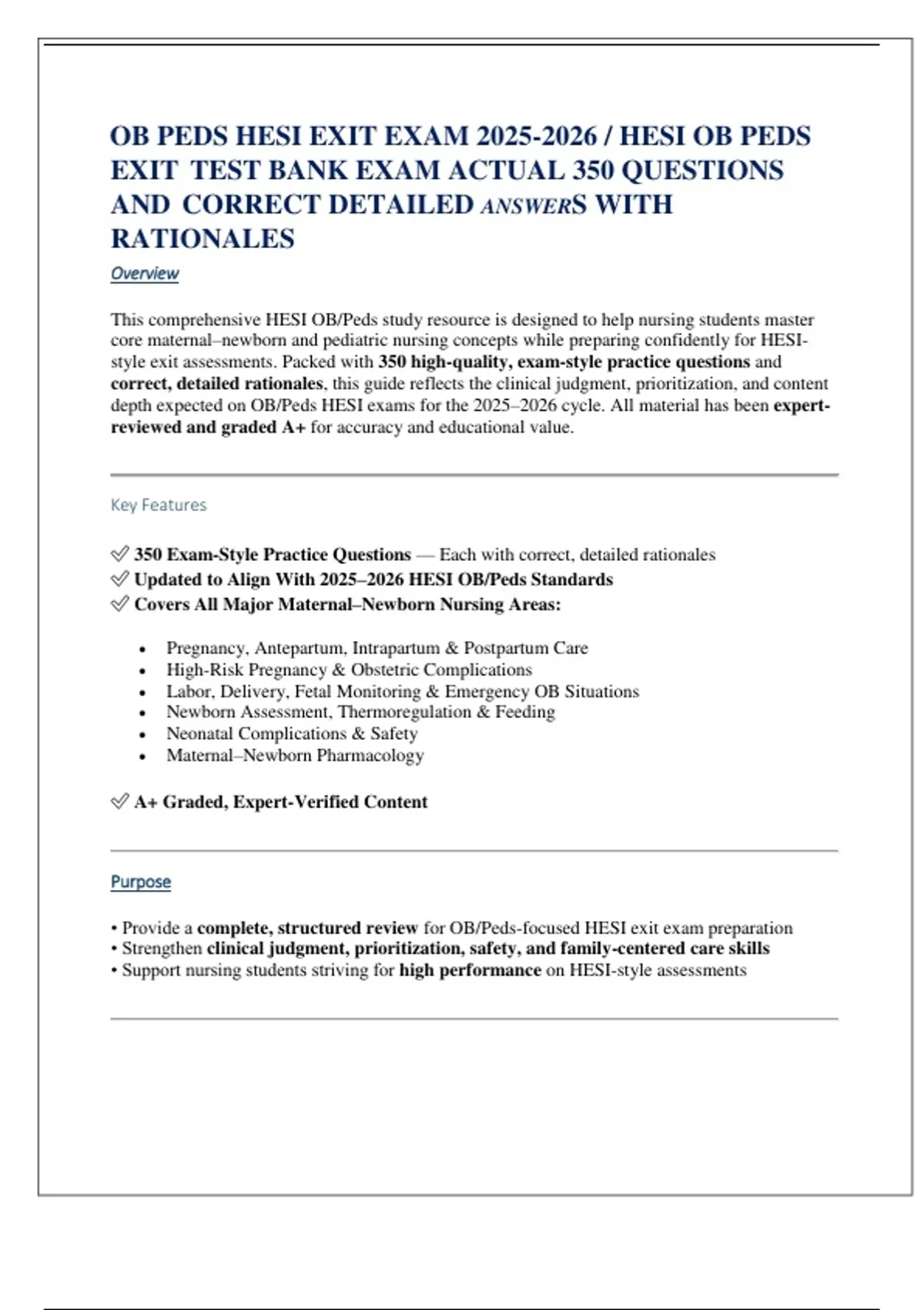 depth expected on OB/Peds HESI exams for the 2025–2026 cycle. All material has been expert-
