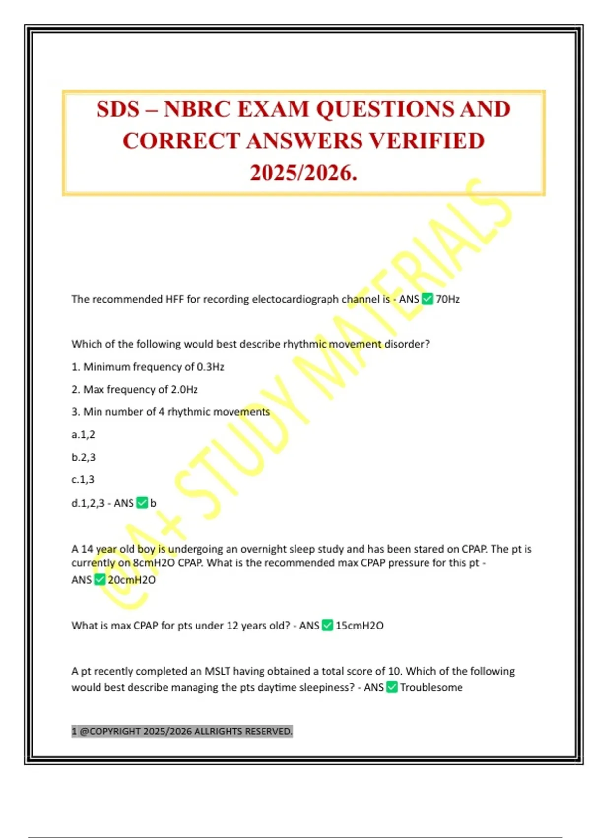 SDS – NBRC EXAM QUESTIONS AND CORRECT ANSWERS VERIFIED 2025/2026.