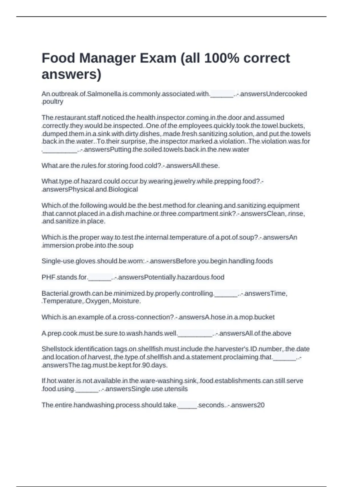 Food Manager Exam (all 10Food Manager Exam (all 100% correct answers)0% correct answers)