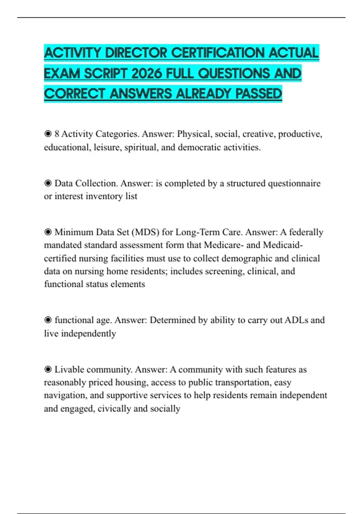 ACTIVITY DIRECTOR CERTIFICATION ACTUAL EXAM SCRIPT 2026 FULL QUESTIONS AND CORRECT ANSWERS ALREADY PASSED