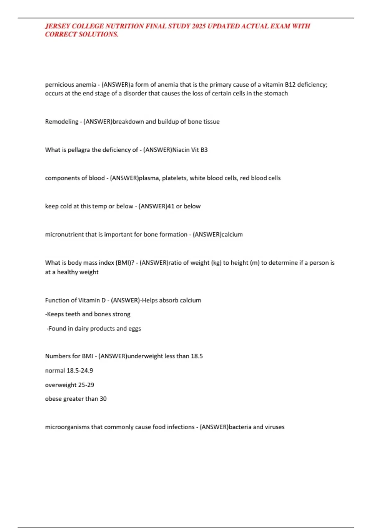 , JERSEY COLLEGE NUTRITION FINAL STUDY 2025 UPDATED ACTUAL EXAM WITH