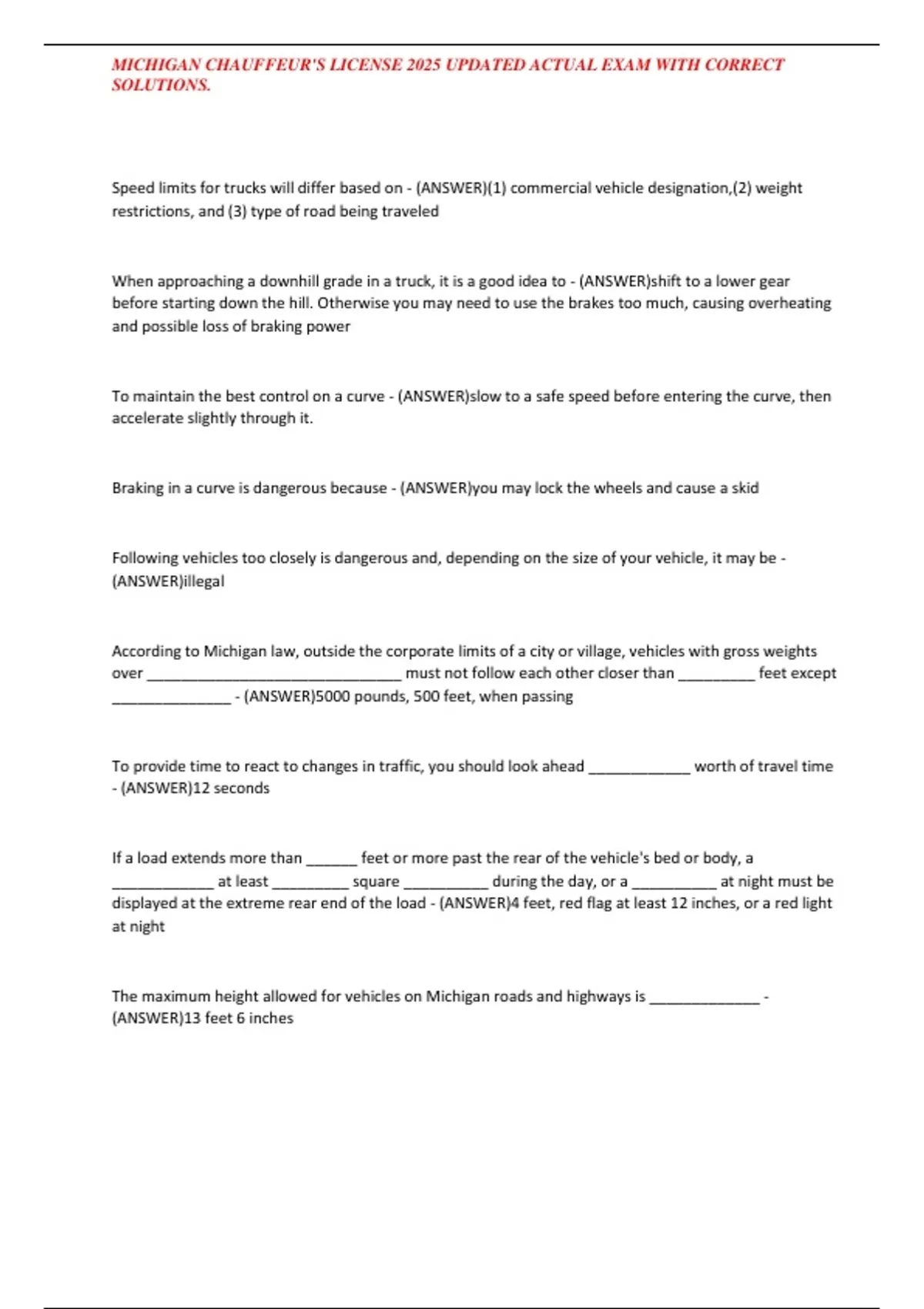 MICHIGAN CHAUFFEUR'S LICENSE 2025 UPDATED ACTUAL EXAM WITH CORRECT SOLUTIONS.