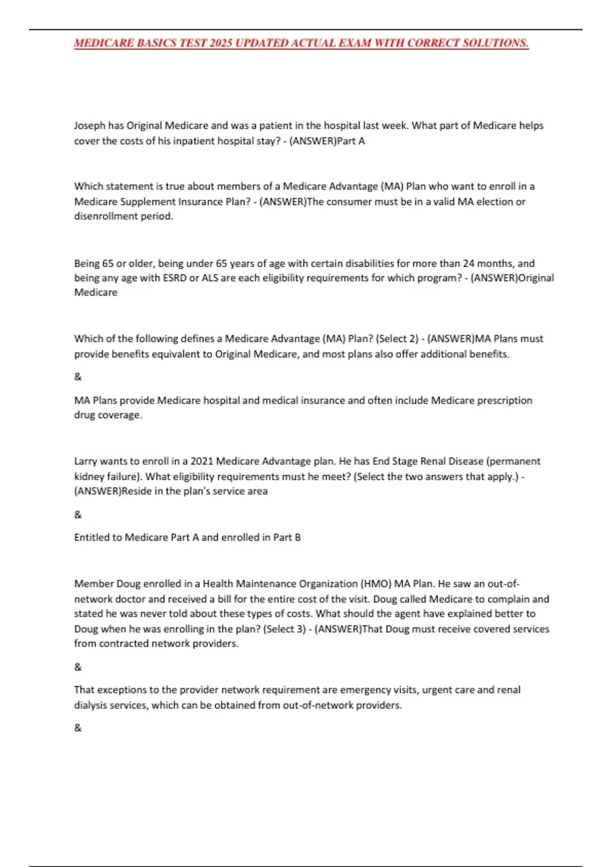 MEDICARE BASICS TEST 2025 UPDATED ACTUAL EXAM WITH CORRECT SOLUTIONS.