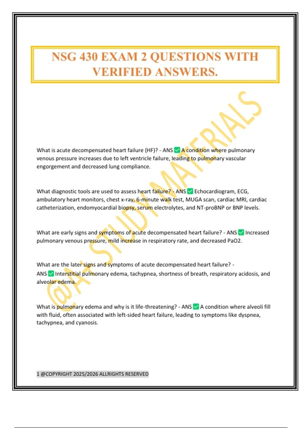 NSG 430 EXAM 2 QUESTIONS WITH