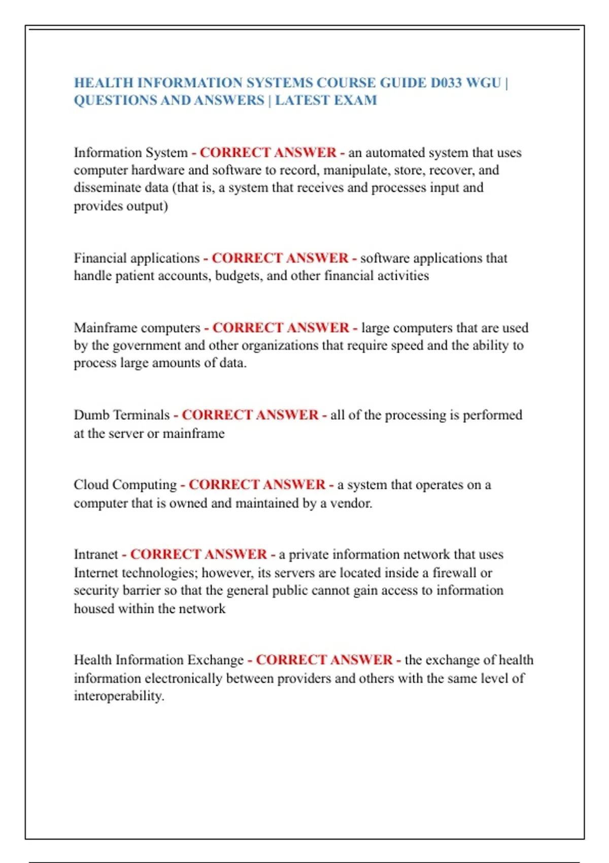 HEALTH INFORMATION SYSTEMS COURSE GUIDE D033 WGU |