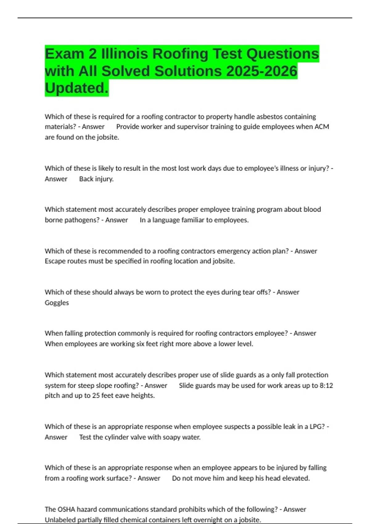 asbestos containing roofing materials before project begins? - Answer Analysis of test