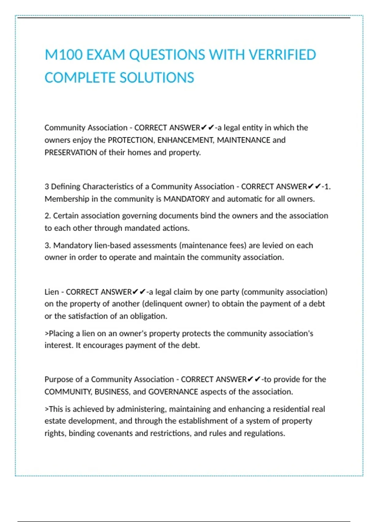 M100 EXAM QUESTIONS WITH VERRIFIED