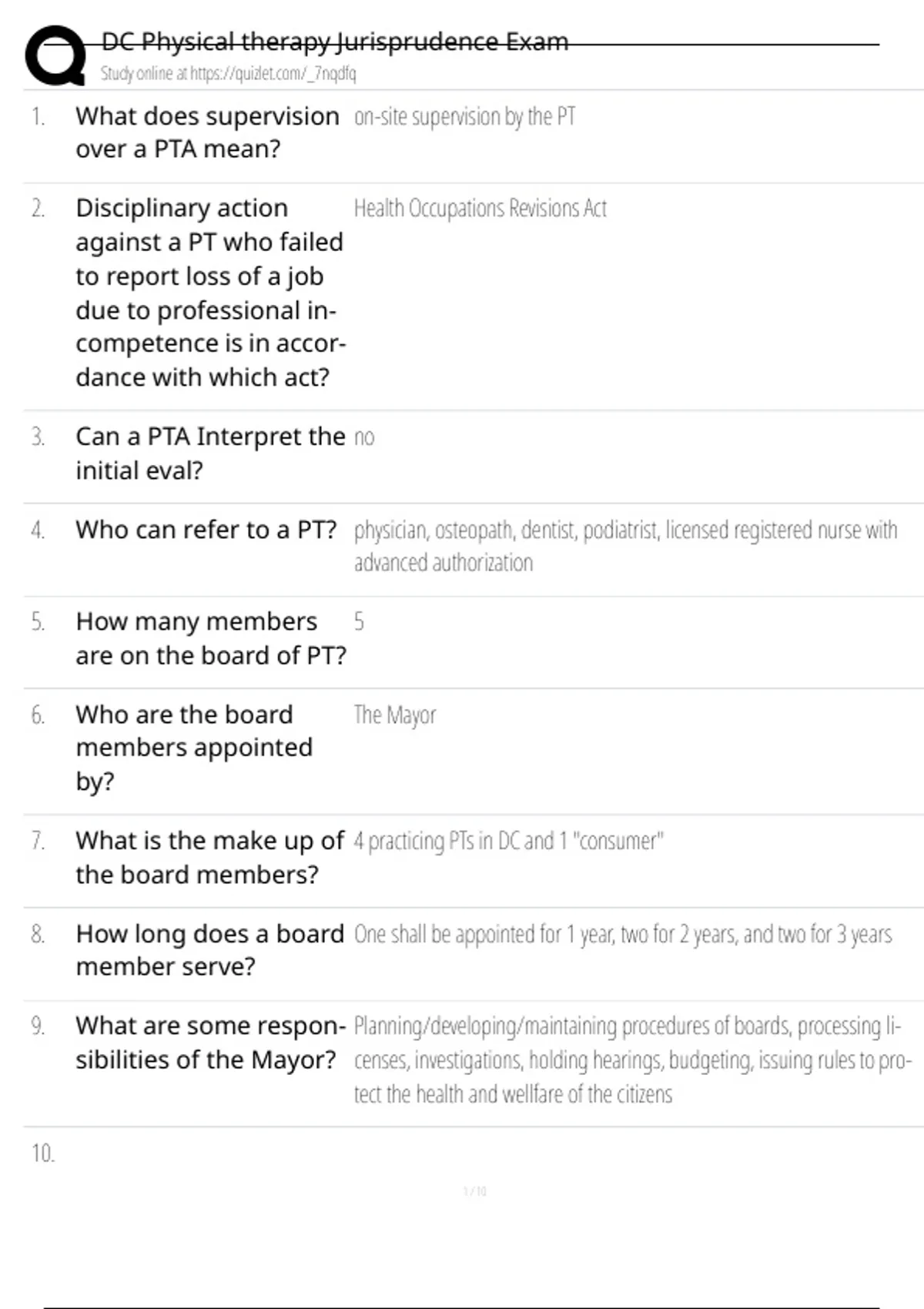 7. What is the make up of 4 practicing PTs in DC and 1 "consumer"