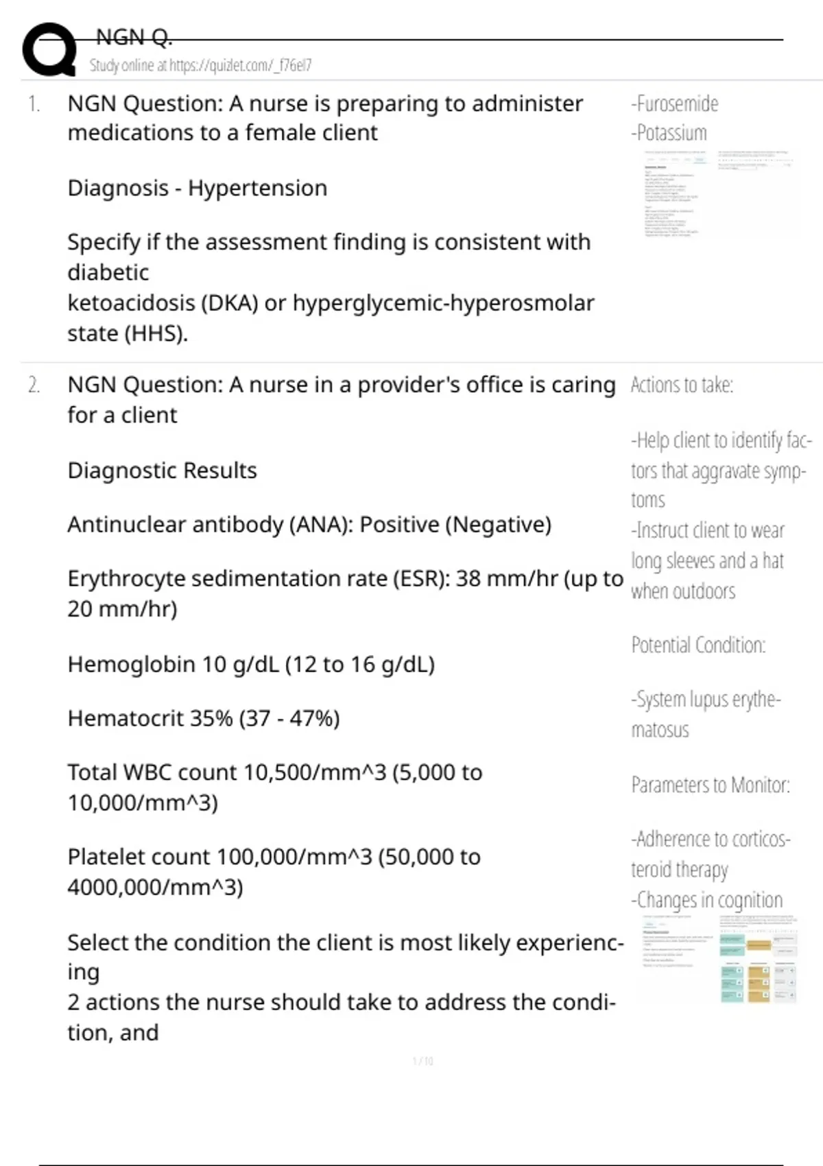 1. NGN Question: A nurse is preparing to administer -Furosemide