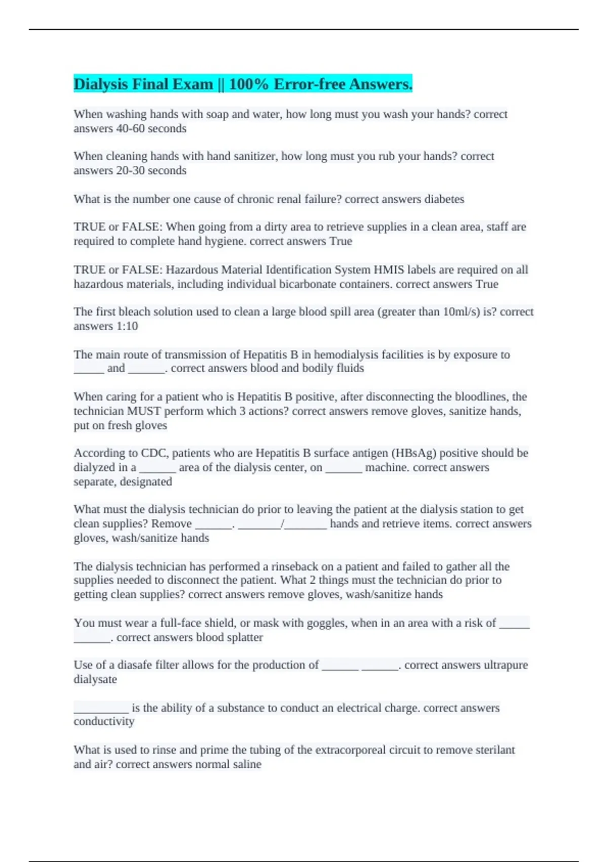 How often should staff clean the dialysis machine with acid? correct answers daily