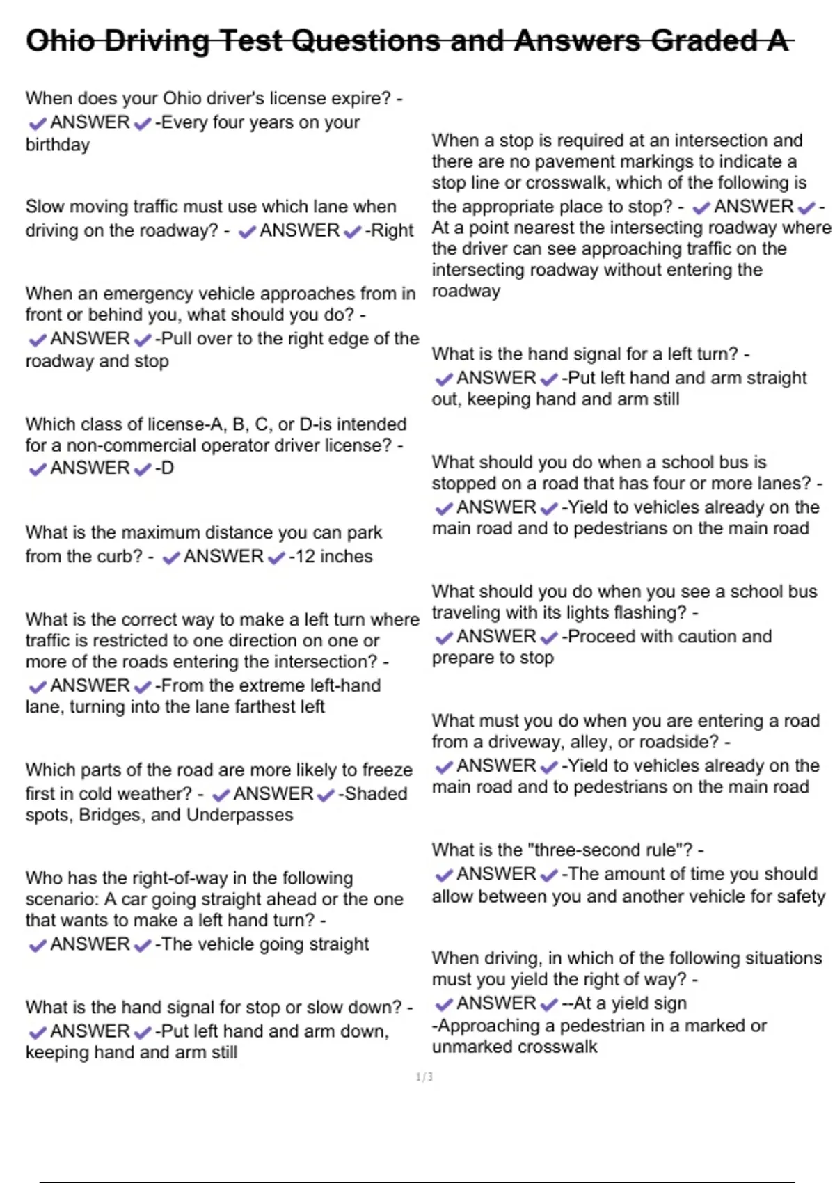 Ohio Driving Test Questions and Answers Graded A
