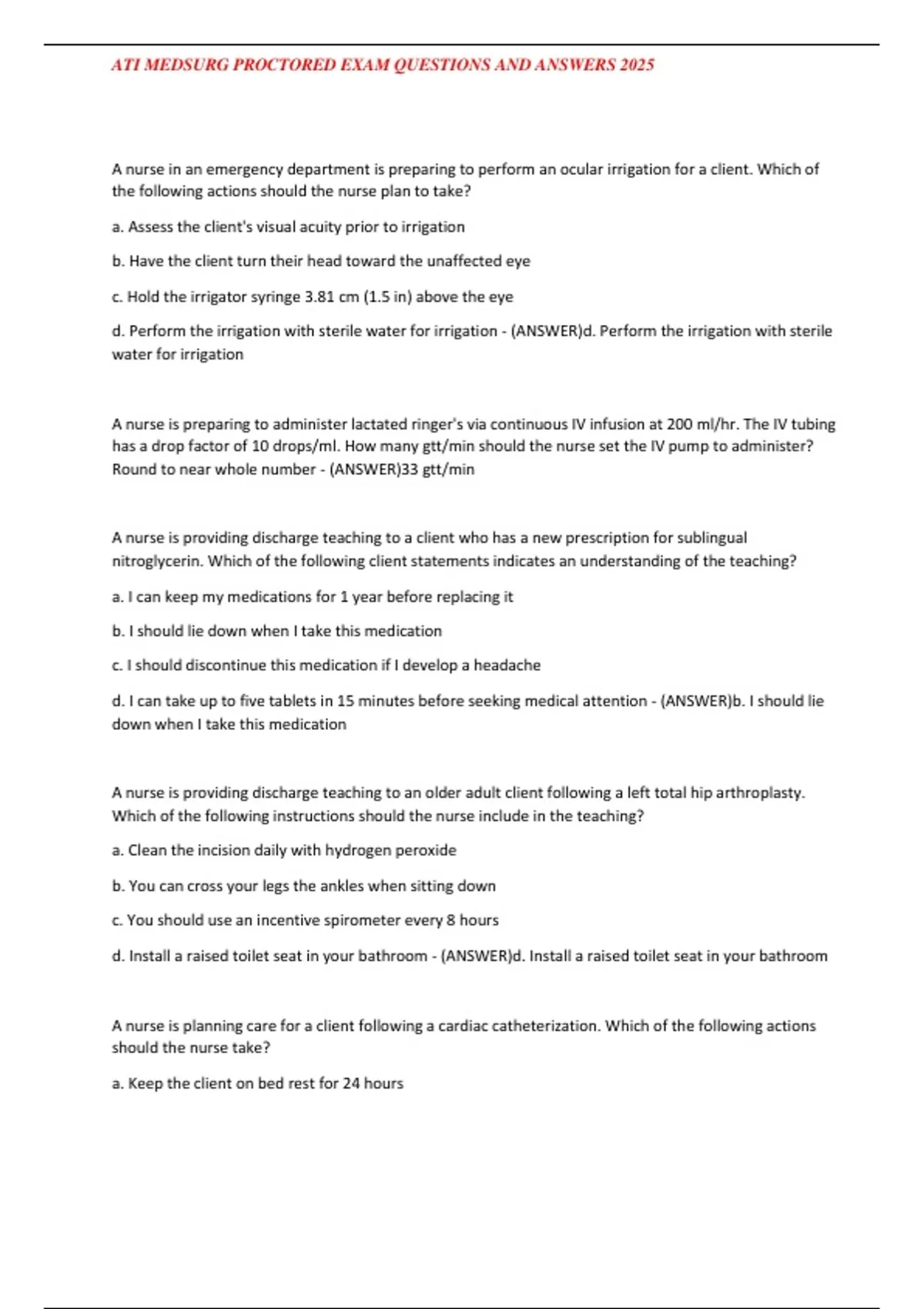 ,ATI MEDSURG PROCTORED EXAM QUESTIONS AND ANSWERS 2025