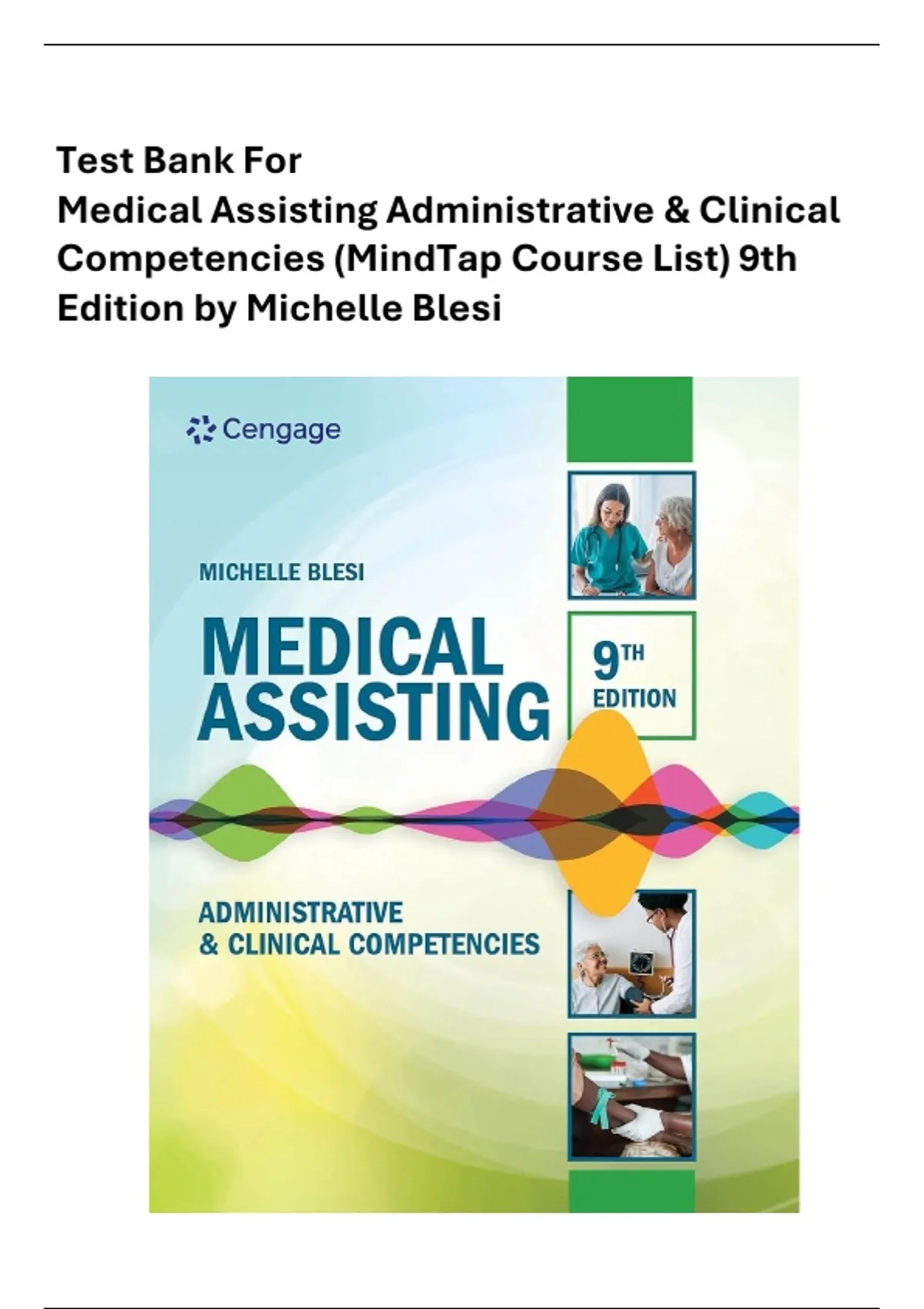 Test Bank for Medical Assisting Administrative & Clinical Competencies (MindTap Course List) 9th Edition by Michelle Blesi Medical Assisting Administrative & Clinical Competencies 9th Edition Test Bank (MindTap) Test Bank for Medical Assisting 9e | Administrative & Clinical Competencies PDF MindTap Medical Assisting 9th Edition Test Bank – Admin & Clinical Skills Medical Assistant Competencies Test Bank 9th Edition | Exam Questions & Answers Medical Assisting Test Bank (Cengage/MindTap) 9e | Complete MA Exam Prep Prepare confidently with the Medical Assisting Administrative & Clinical Competencies, 9th Edition Test Bank — a complete exam resource for medical assistant training, aligned with the MindTap course curriculum. This verified test bank provides real instructor-level questions and accurate answers, helping students master both administrative and clinical skills required in modern healthcare settings. This edition supports MA students in diploma, certificate, and associate programs by covering essential competencies such as phlebotomy, patient assessment, medical records management, appointment scheduling, billing & coding, aseptic procedures, clinical equipment use, and office operations.
