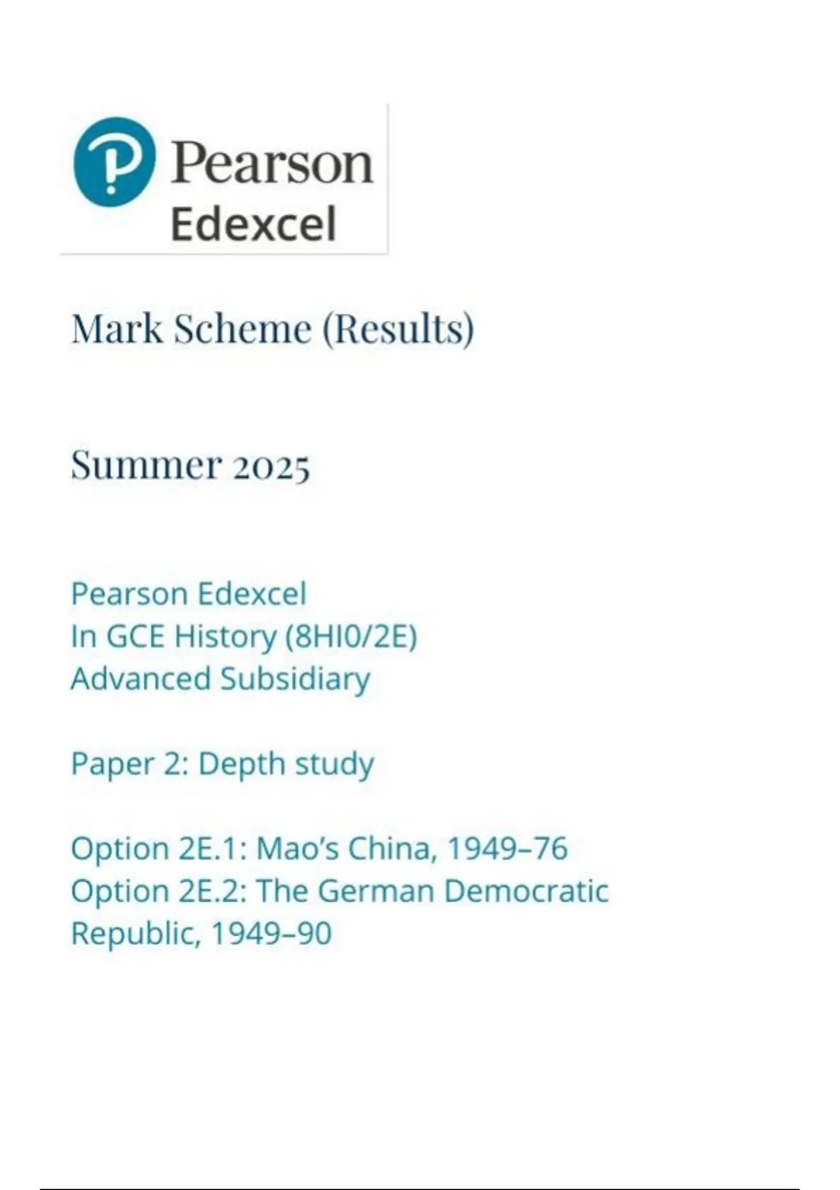 Pearson Edexcel as level History |final mark scheme |2025|8HI0/2e