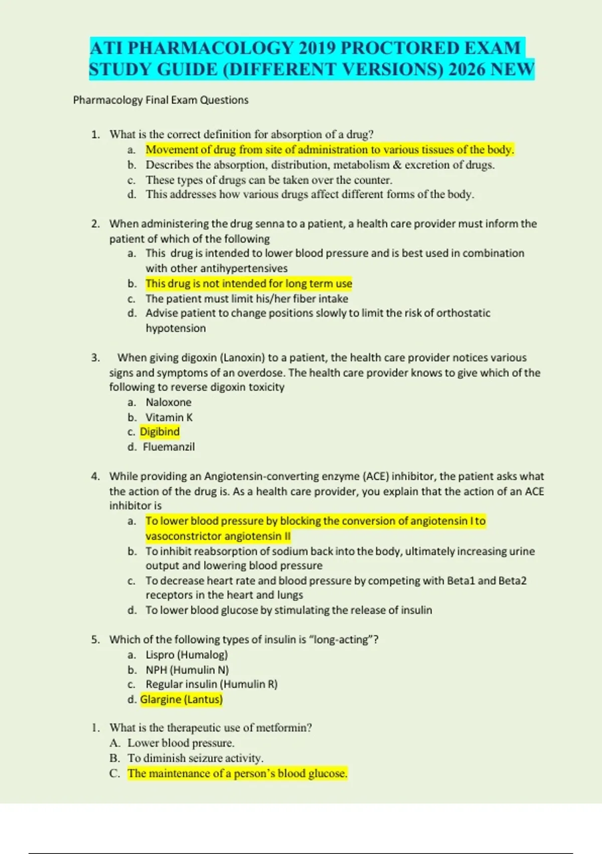 Pharmacology Final Exam Questions