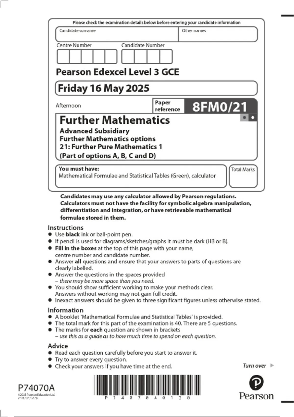2025 pearson edexcel level 3 gce further