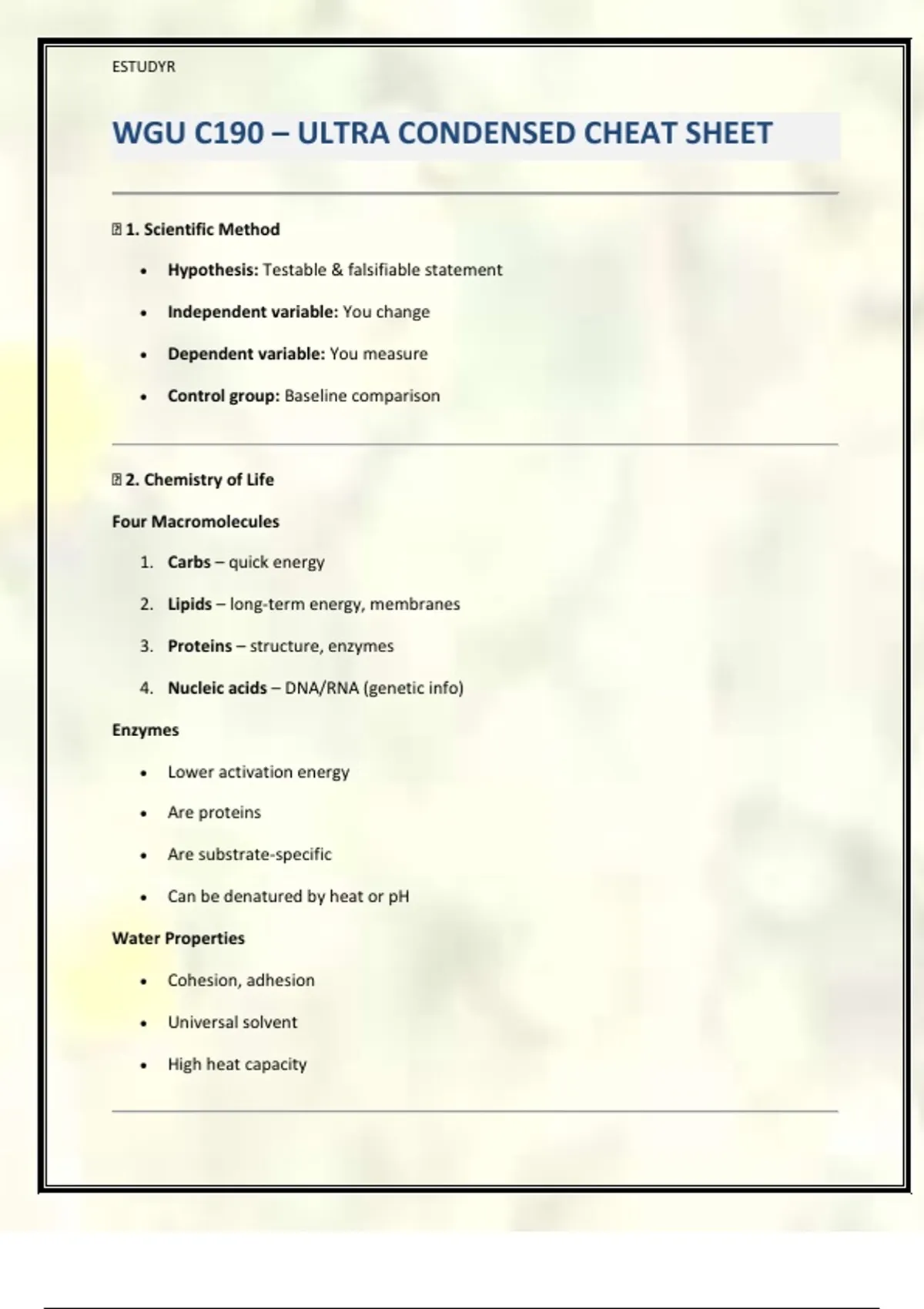 WGU C190 – ULTRA CONDENSED CHEAT SHEET