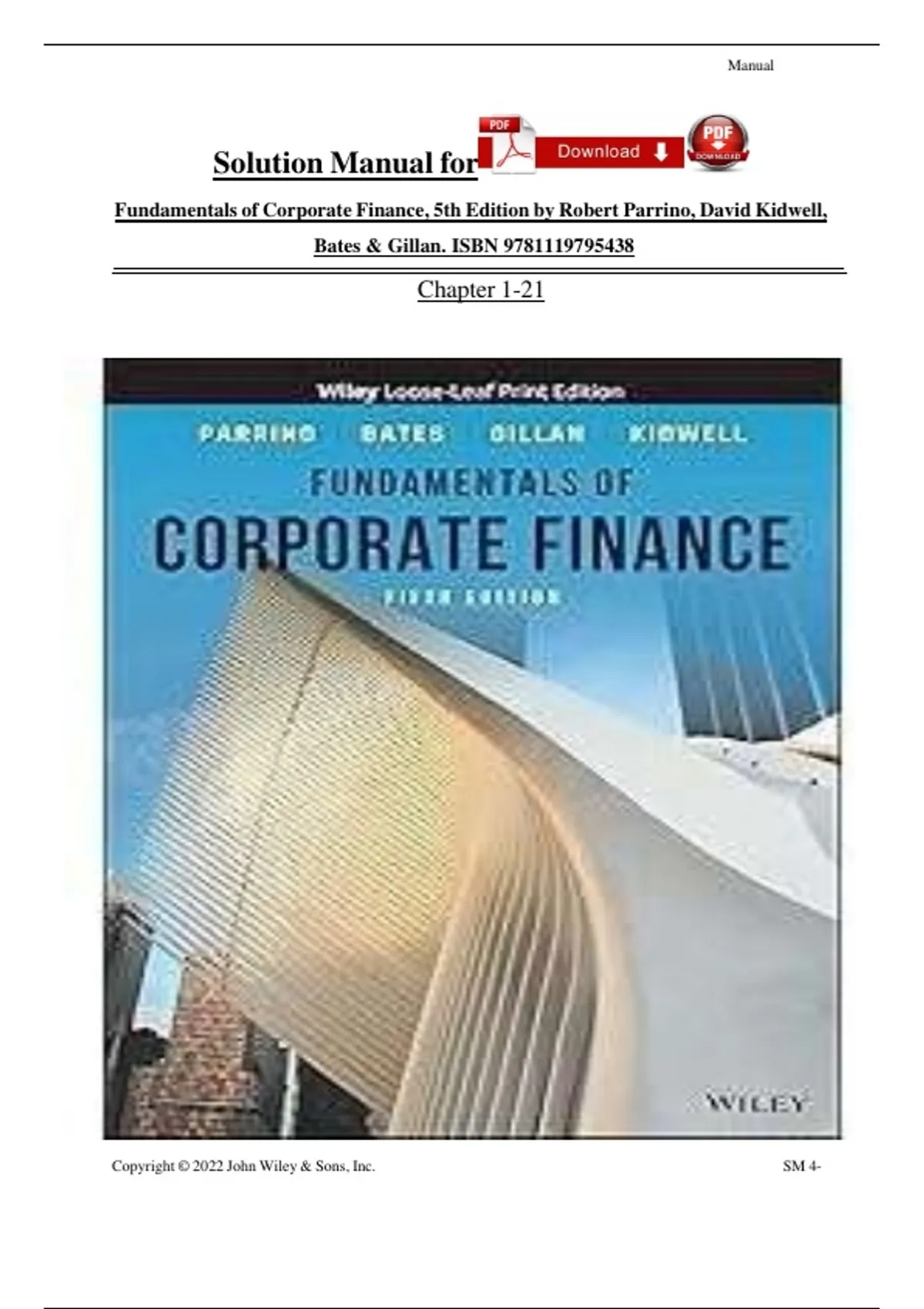 **** INSTANT DOWNLOAD*****Solution manual for fundamentals of corporate finance 5th edition by robert parrino david kidwell bates gillan