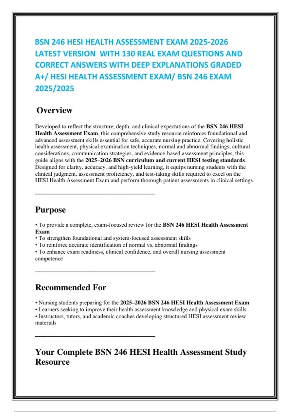 the BSN 246 HESI Health Assessment Exam Review (2025–2026 Latest Edition) offers the