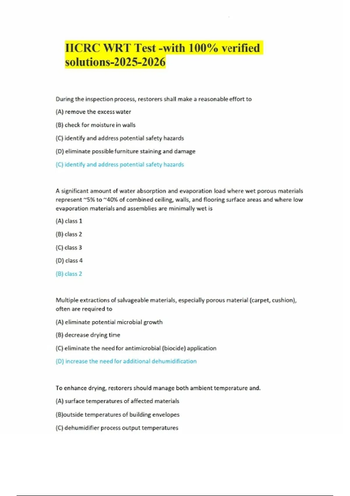 IICRC WRT Test -with 100% verified solutions-