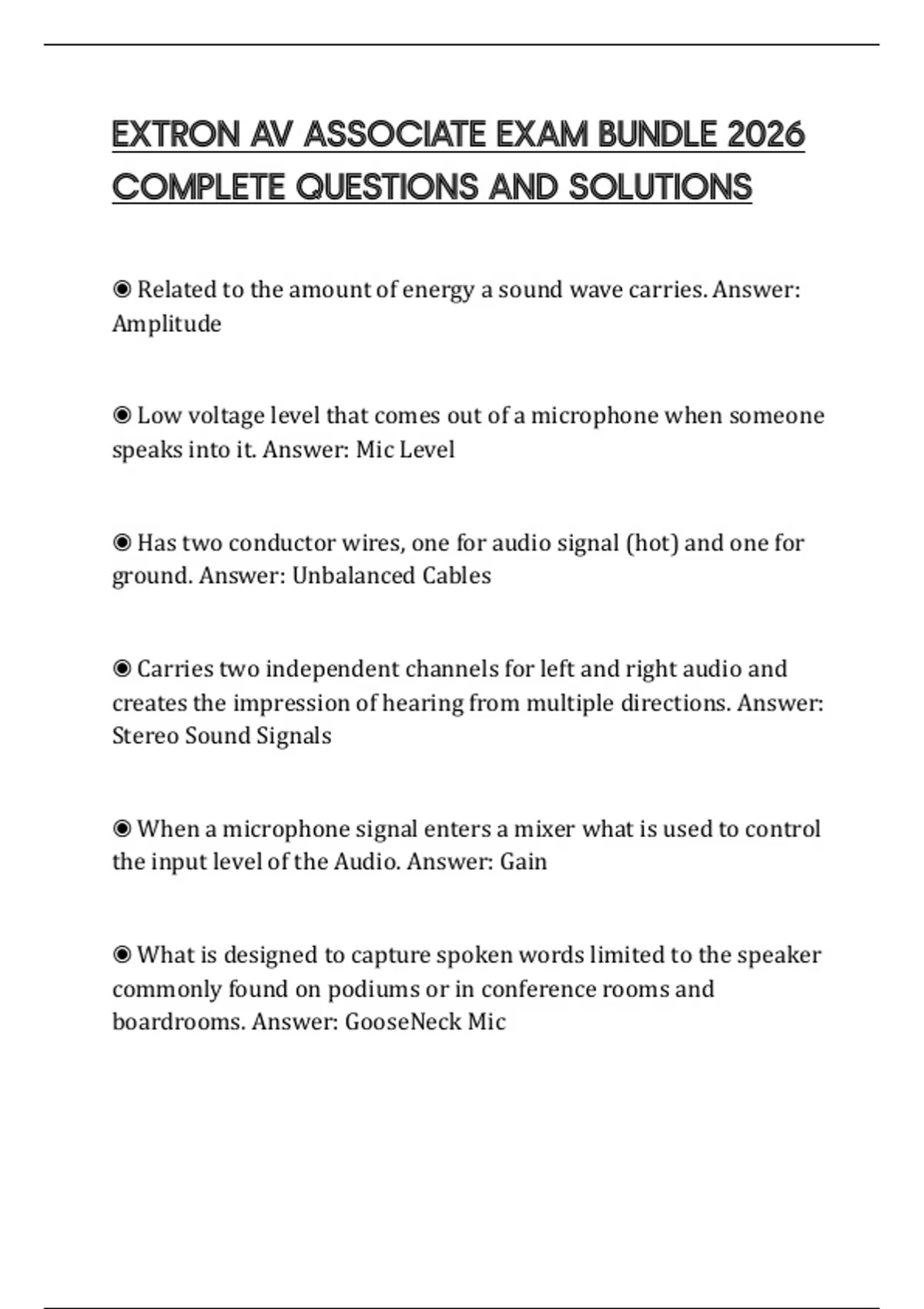 EXTRON AV ASSOCIATE EXAM BUNDLE 2026 COMPLETE QUESTIONS AND SOLUTIONS