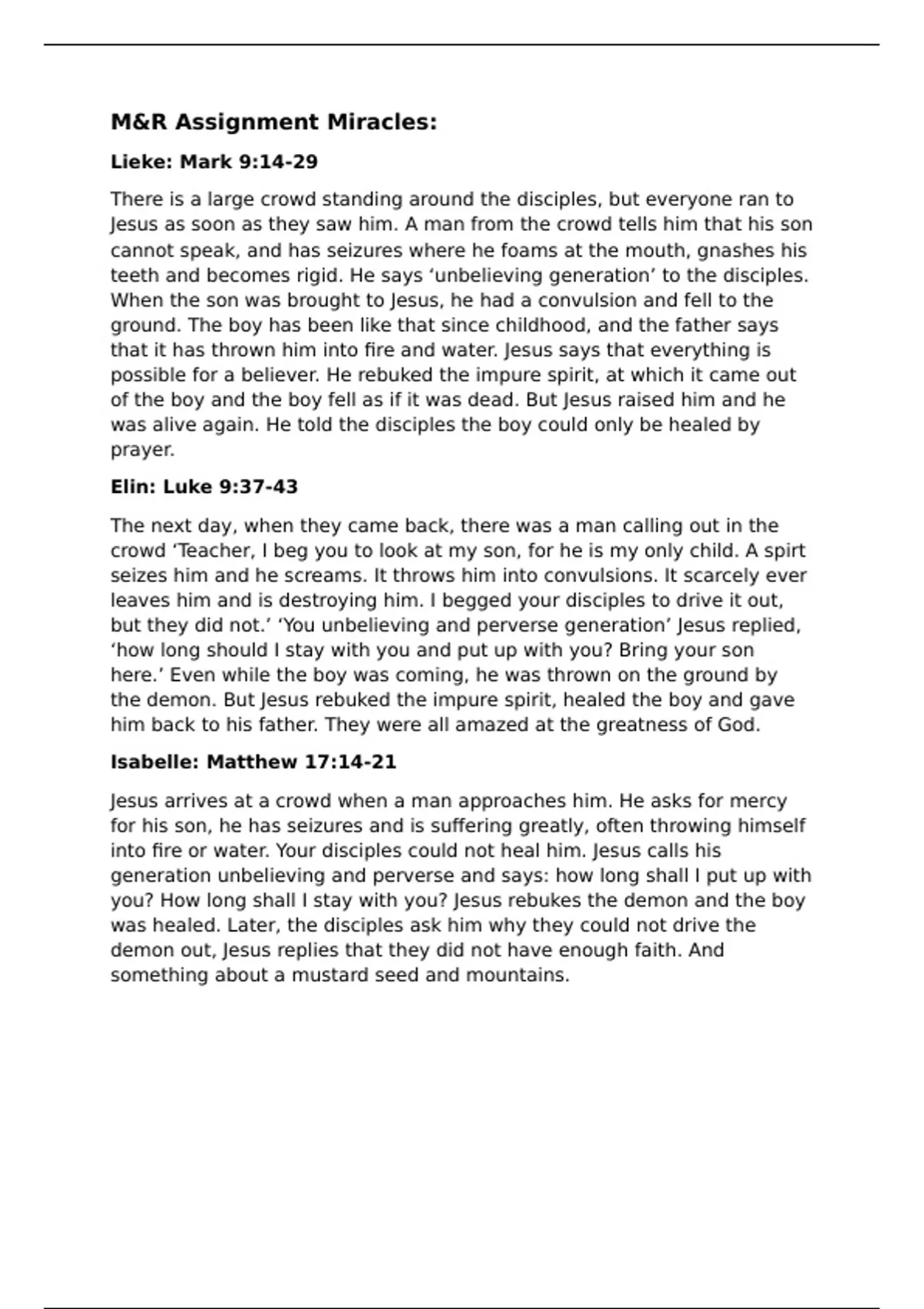 Lieke: Mark 9:14-29