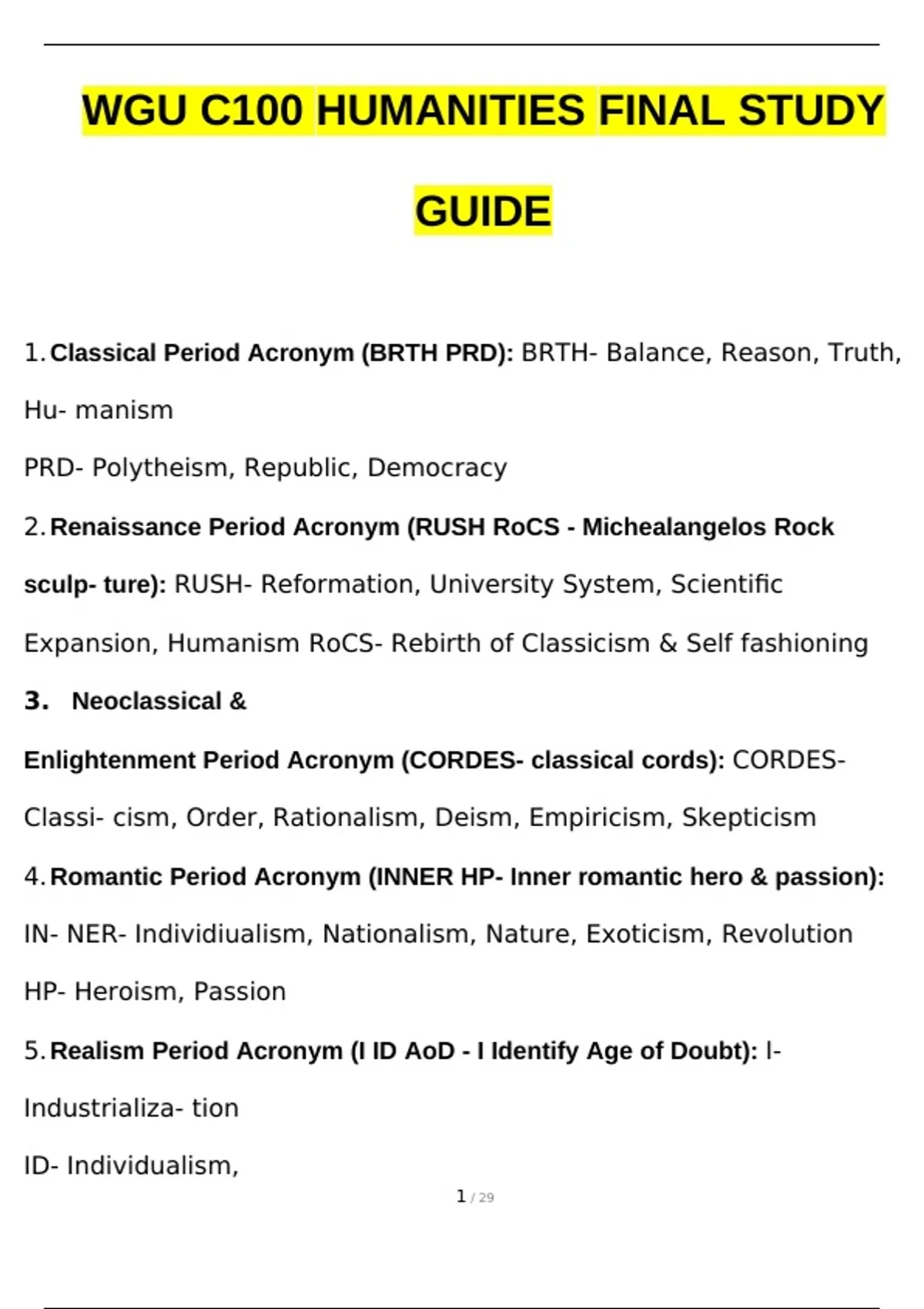 WGU C100 Humanities FINAL Study Guide Graded A+(100% Verified)