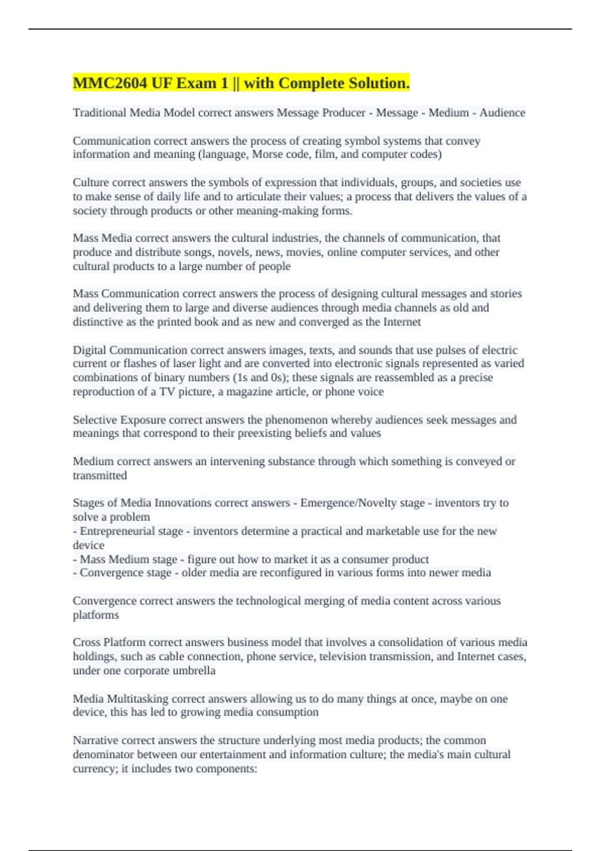 Narrative correct answers the structure underlying most media products; the common