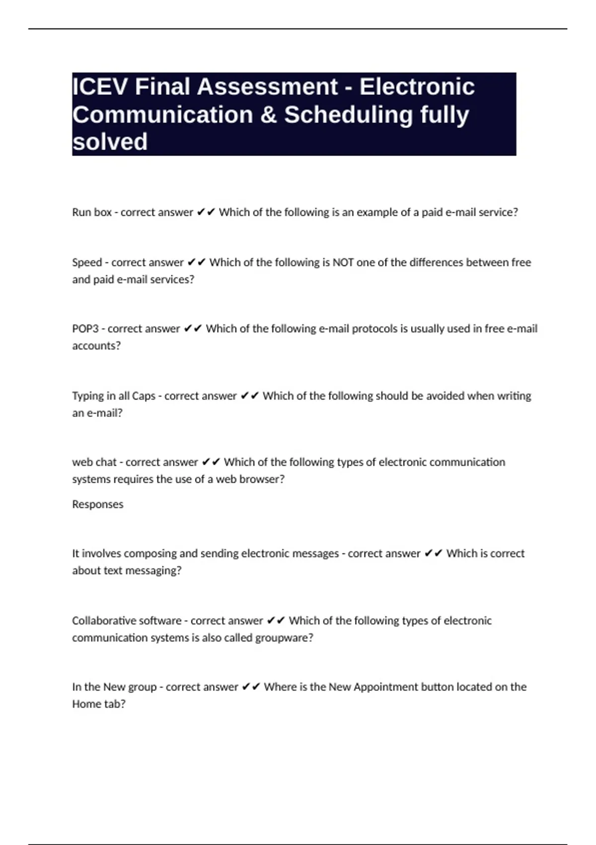 ICEV Final Assessment - Electronic Communication & Scheduling fully solved