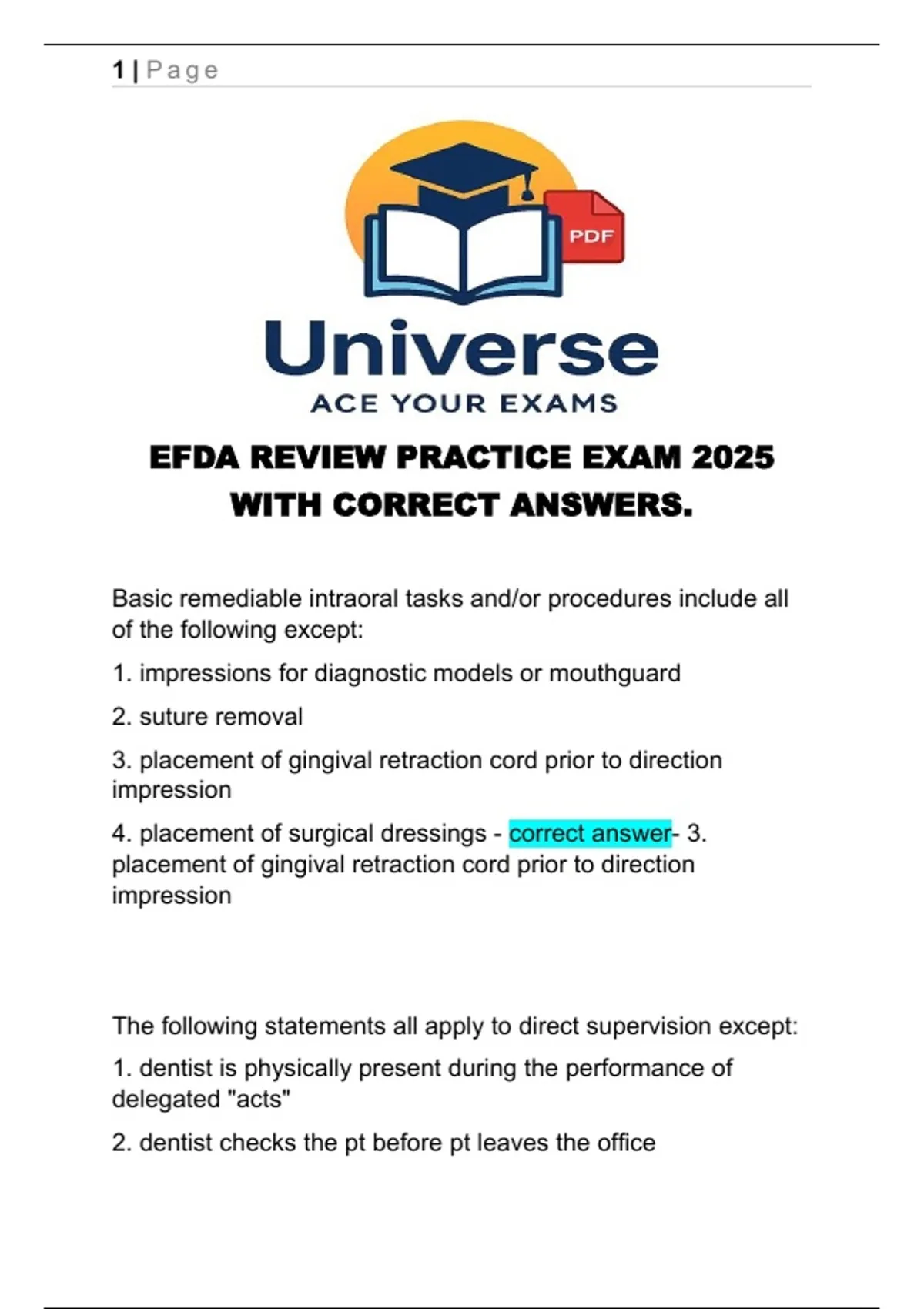 EFDA REVIEW PRACTICE EXAM 2025
