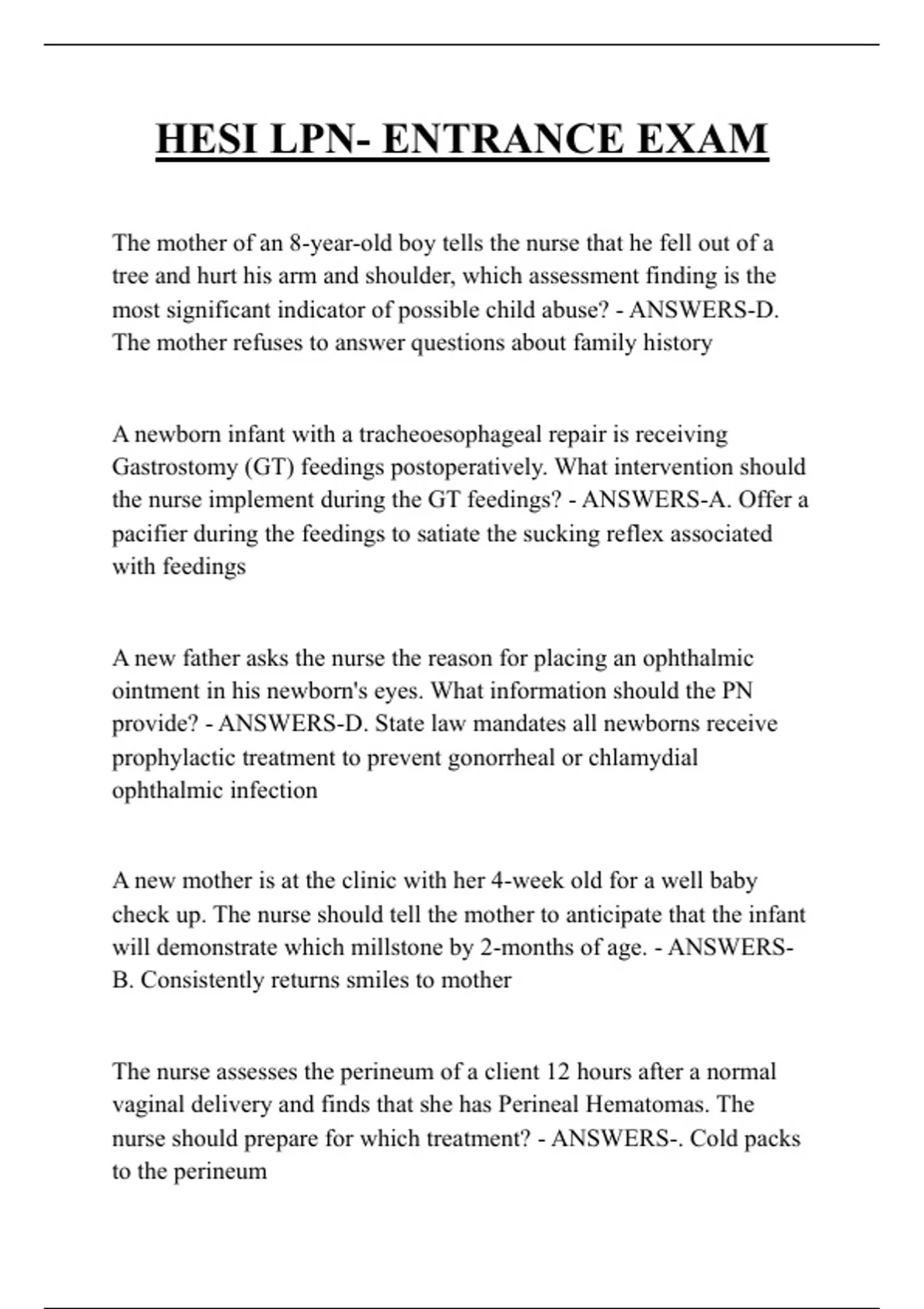 HESI LPN- ENTRANCE EXAM QUESTIONS AND ANSWERS 2026