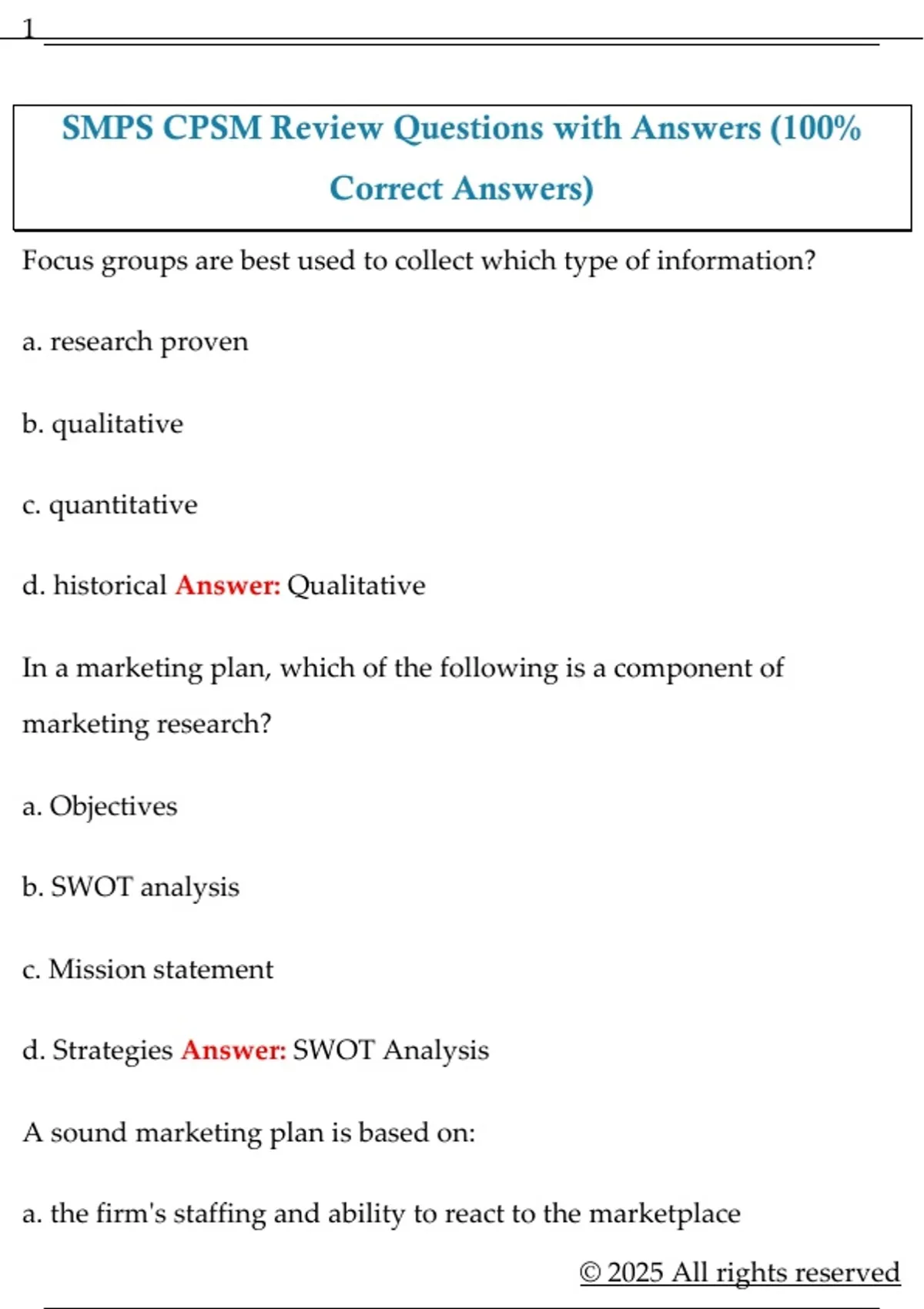 SMPS CPSM Review Questions with Answers (100% Correct Answers)