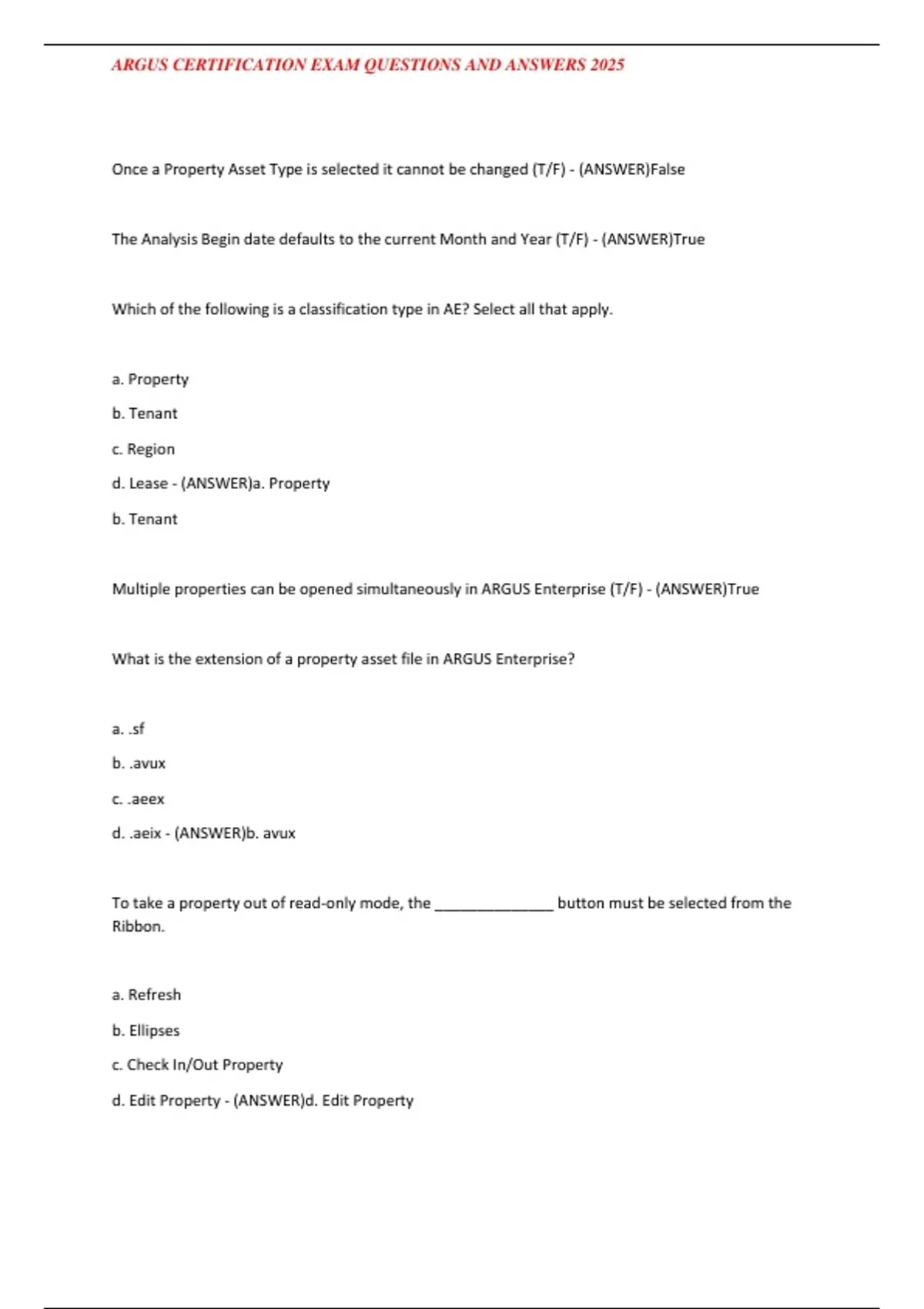 , ARGUS CERTIFICATION EXAM QUESTIONS AND ANSWERS 2025