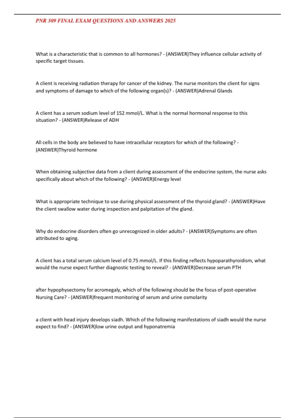 ,PNR 309 FINAL EXAM QUESTIONS AND ANSWERS 2025