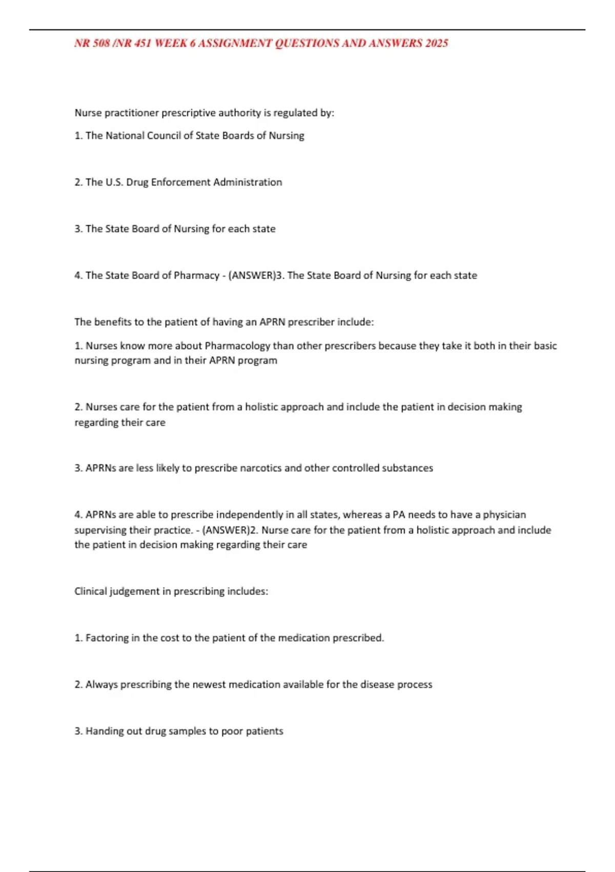 , NR 508 /NR 451 WEEK 6 ASSIGNMENT QUESTIONS AND ANSWERS 2025