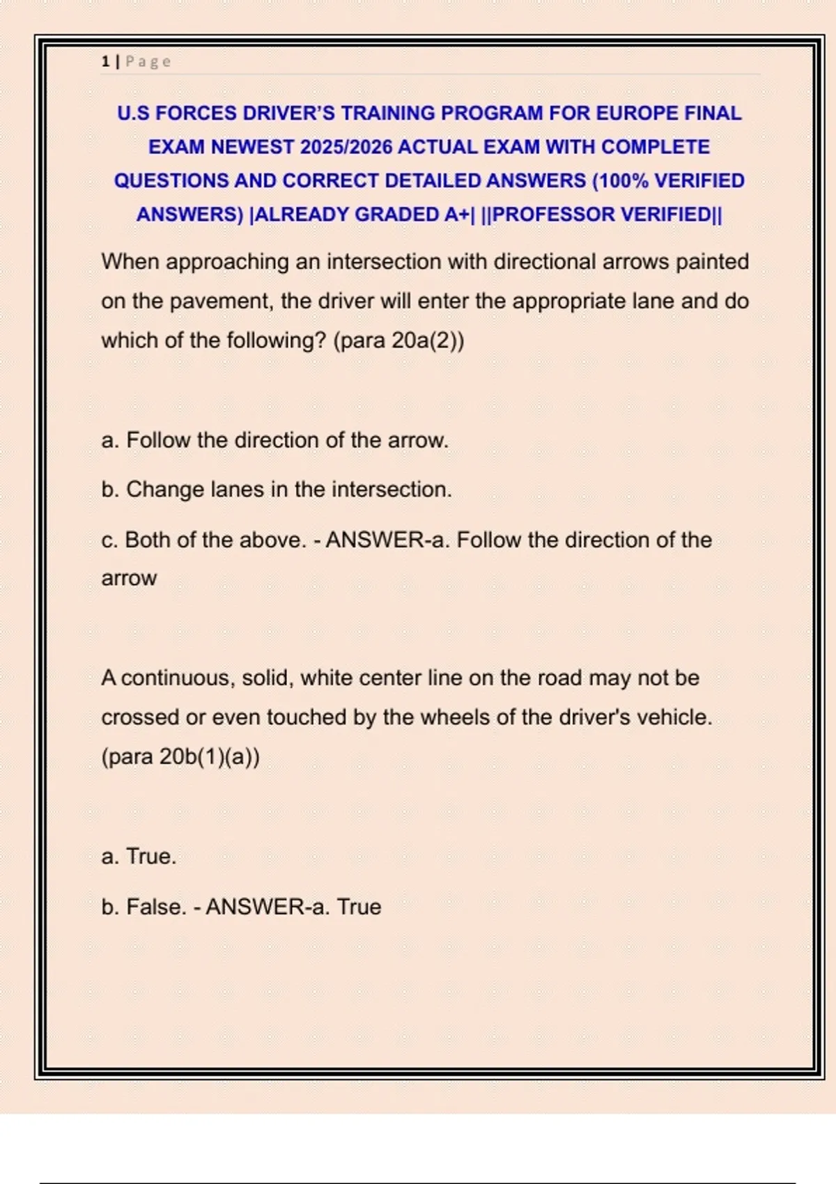 U.S FORCES DRIVER’S TRAINING PROGRAM FOR EUROPE FINAL EXAM NEWEST 2025/2026 ACTUAL EXAM WITH COMPLETE QUESTIONS AND CORRECT DETAILED ANSWERS (100% VERIFIED ANSWERS) |ALREADY GRADED A+| ||PROFESSOR VERIFIED||