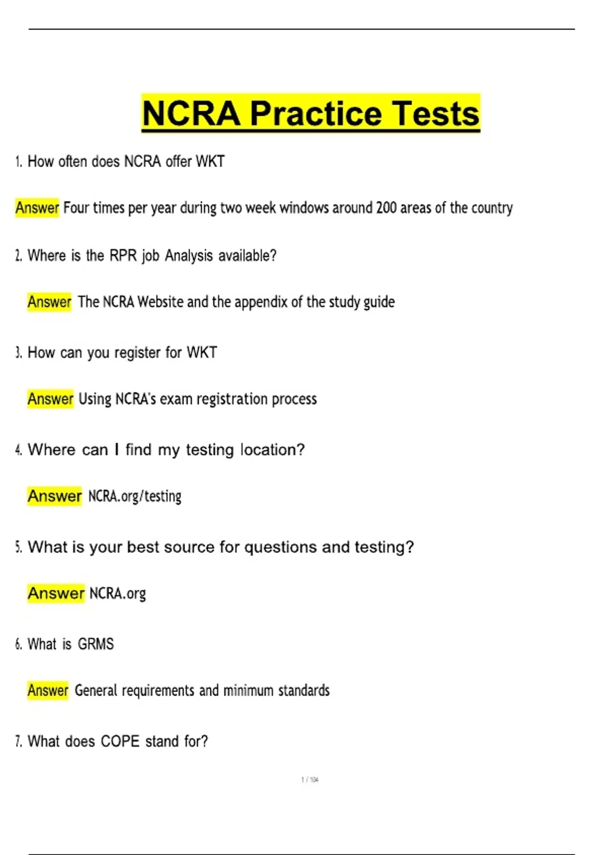 NCRA Practice Tests 2025 question and answers guaranteed a successful A+ PASS