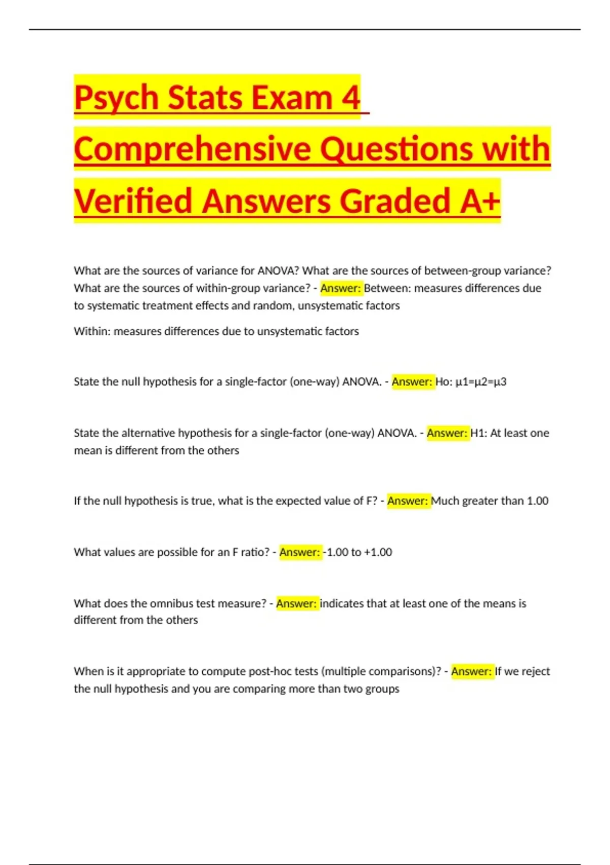 Psych Stats Exam 4 Comprehensive Questions with Verified Answers Graded A+