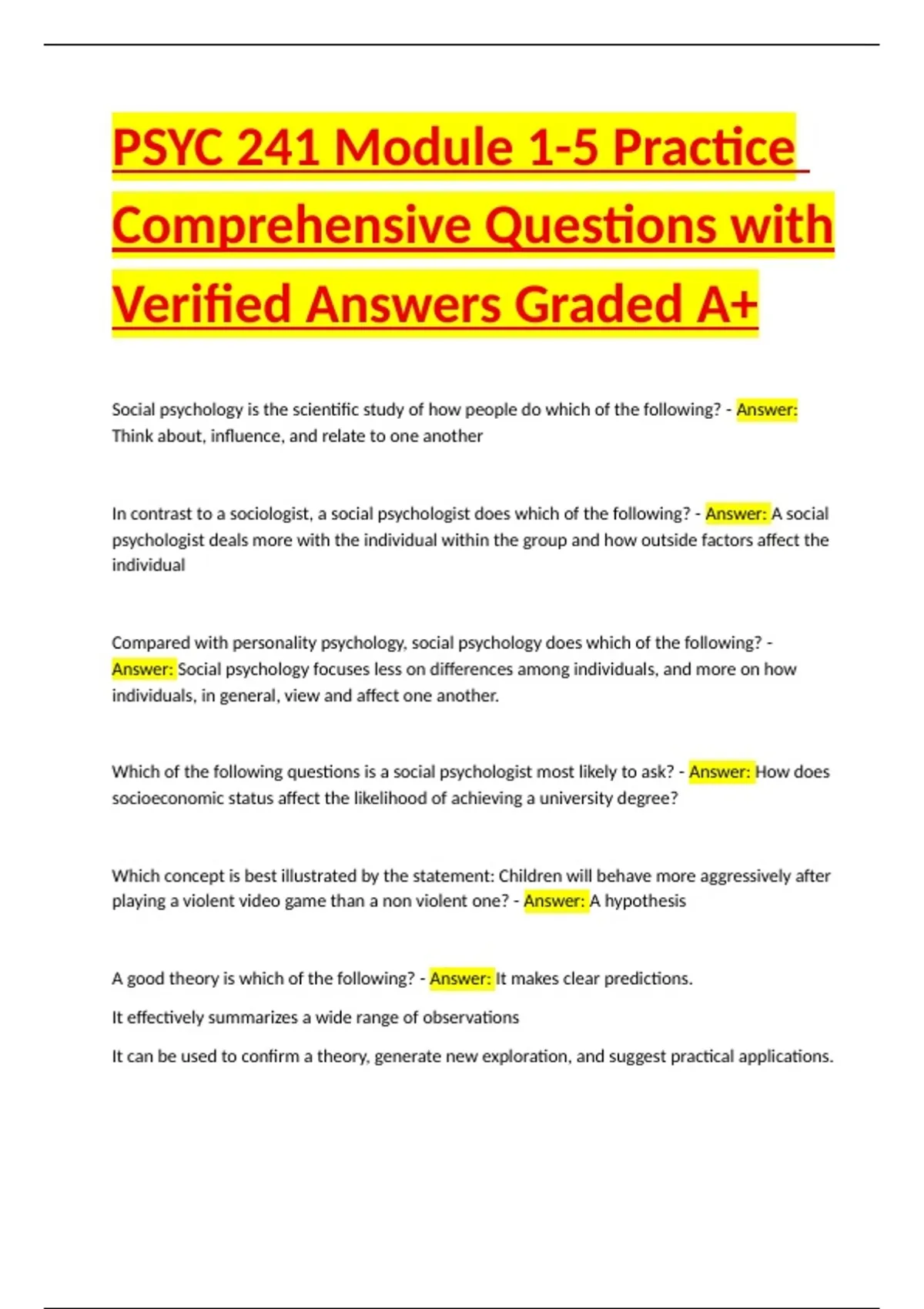 Answer: Social psychology focuses less on differences among individuals, and more on how
