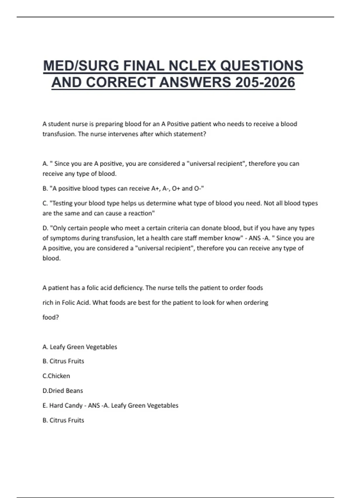 AND CORRECT ANSWERS 205-2026