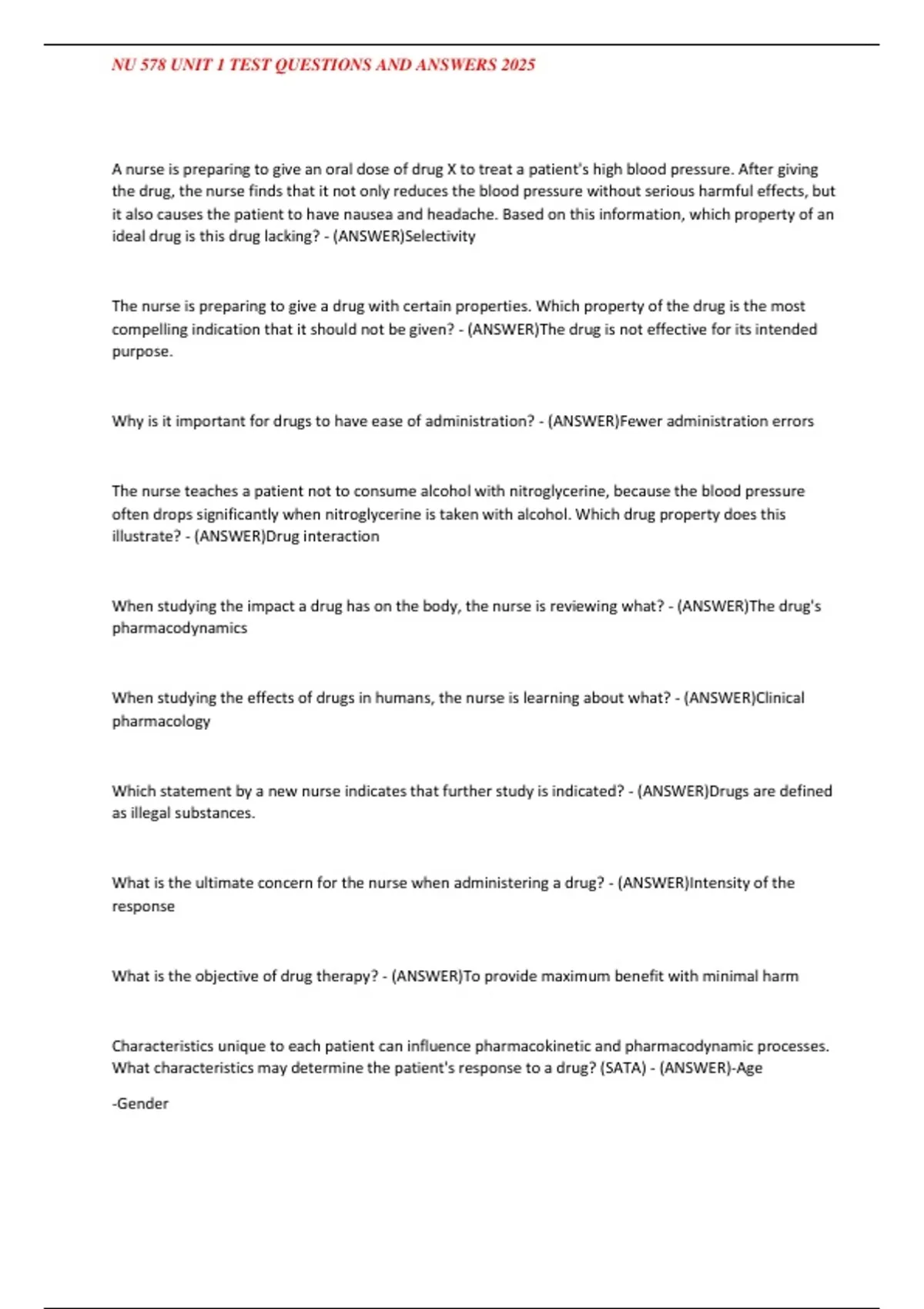 , NU 578 UNIT 1 TEST QUESTIONS AND ANSWERS 2025